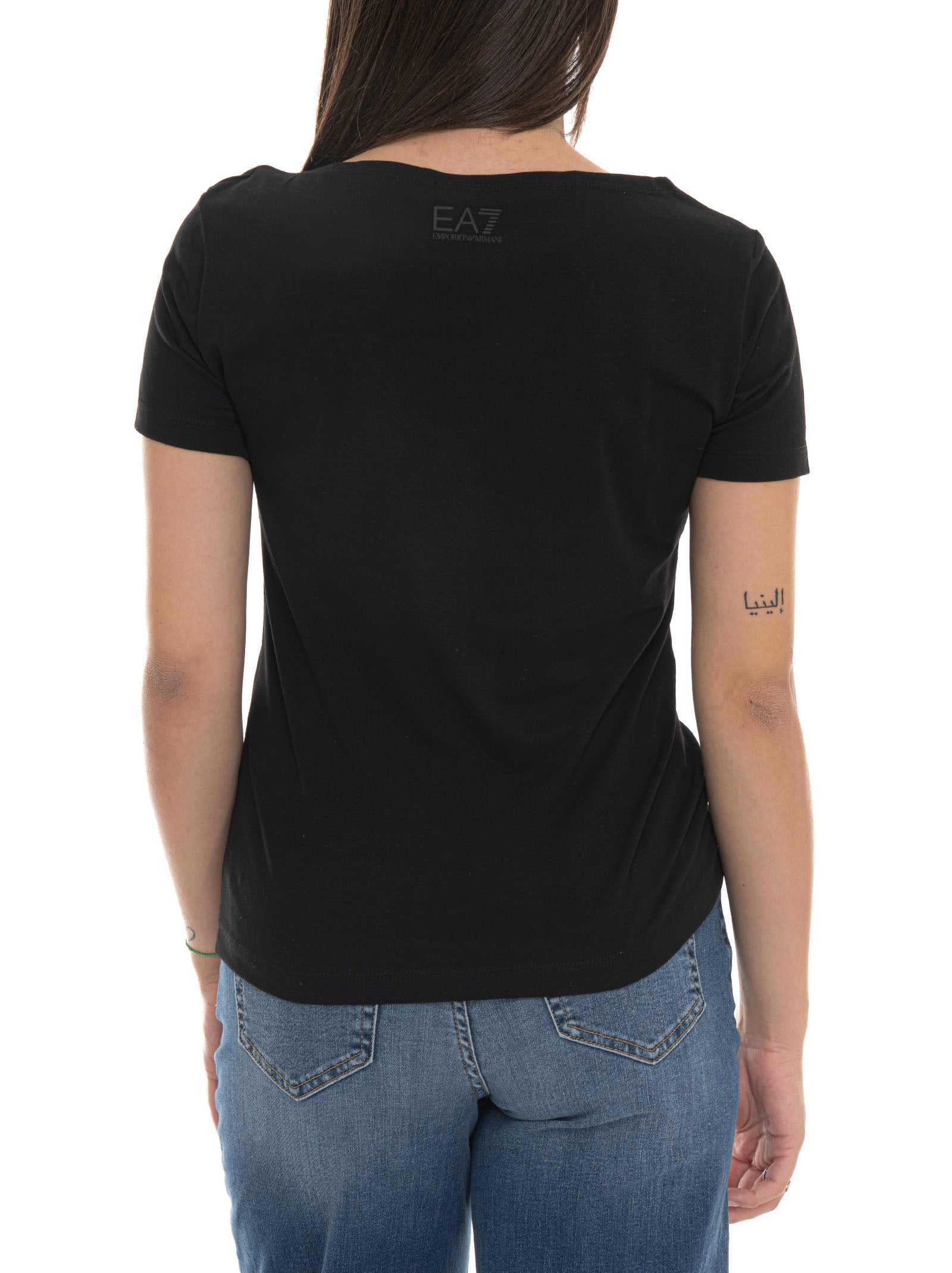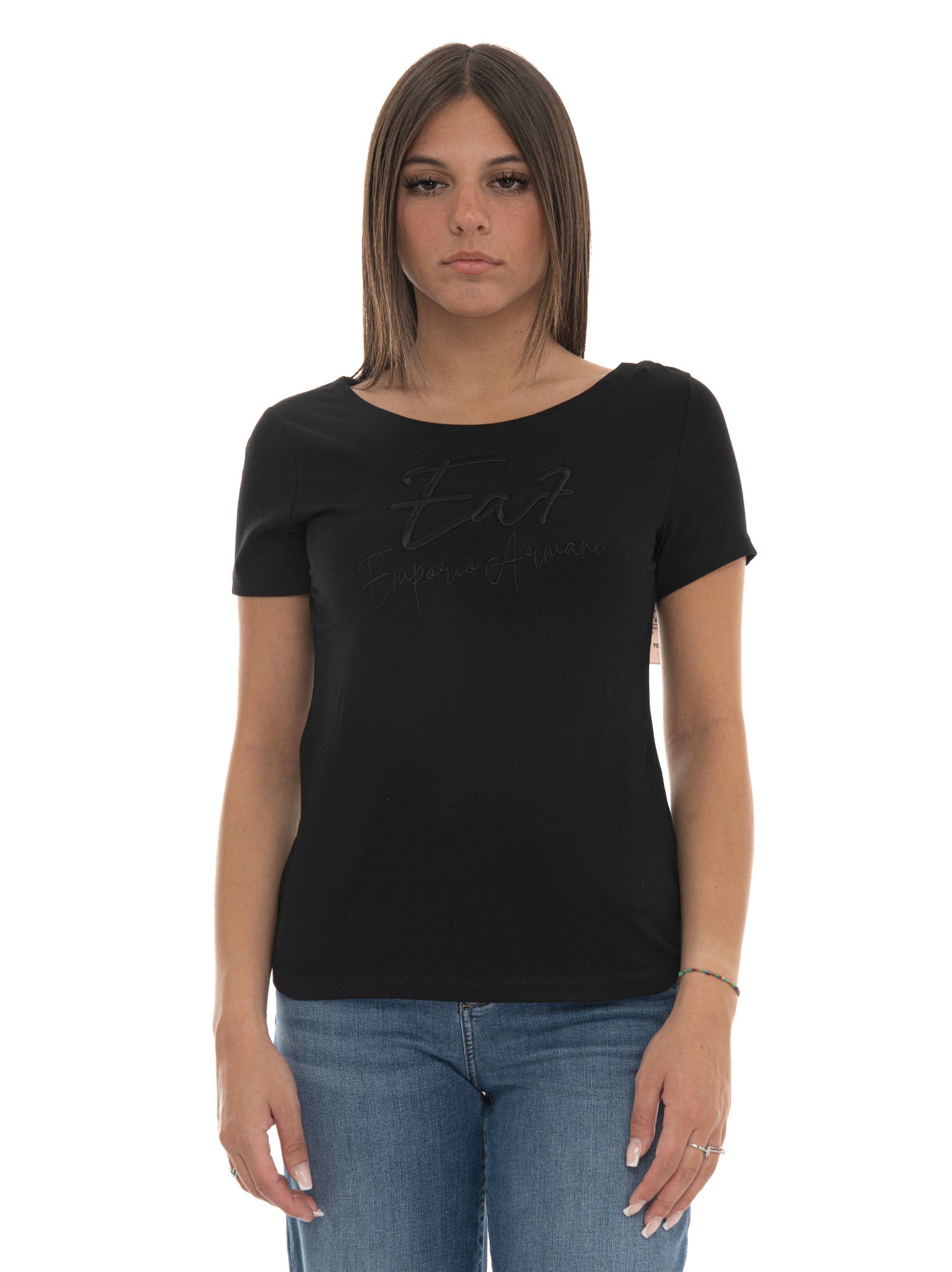T-shirt, manica corta, logo ricamato sul pannello frontale, scollatura ampia, composizione: 95% cotone, 5% elastan, linea: EA7.