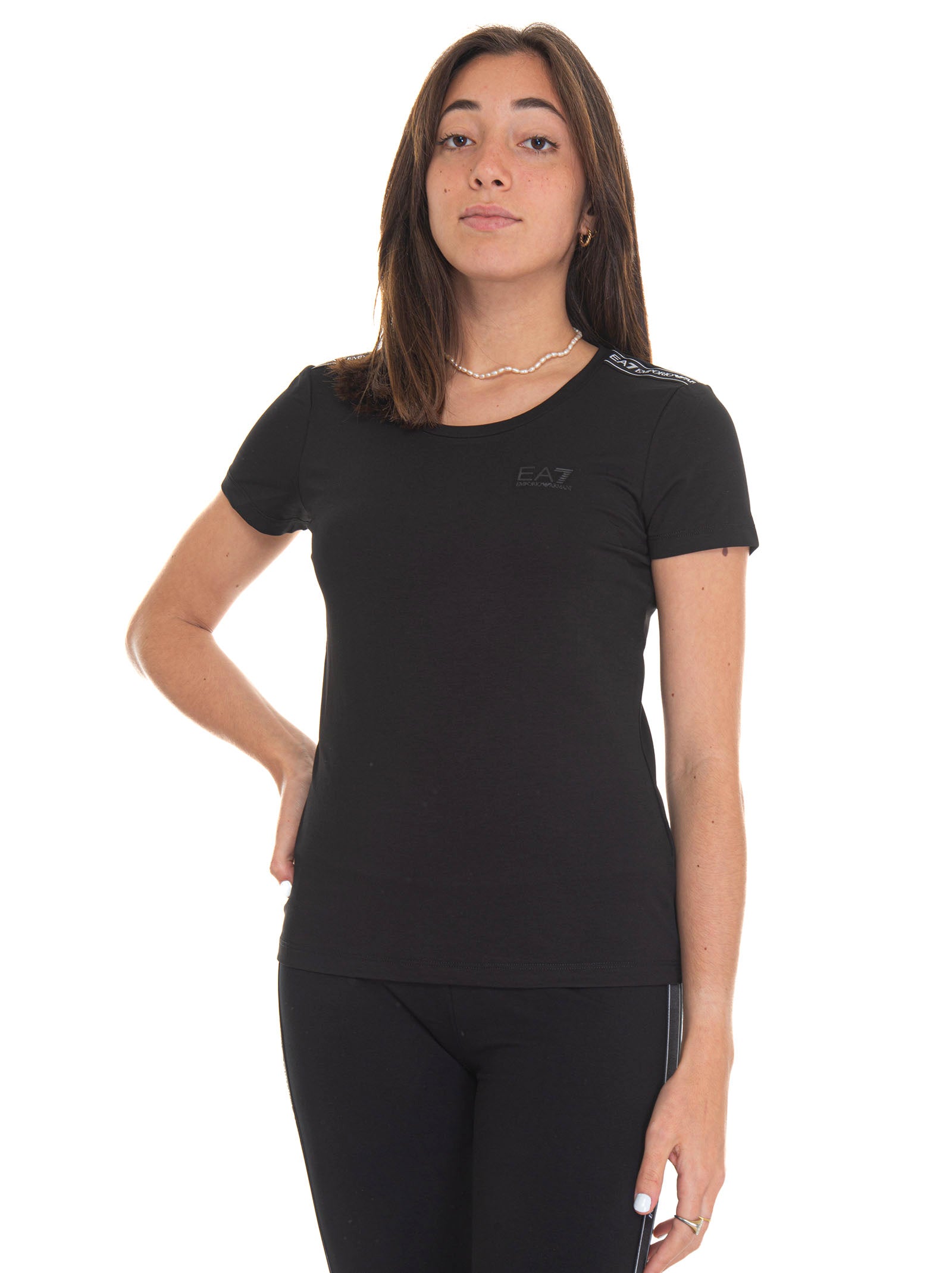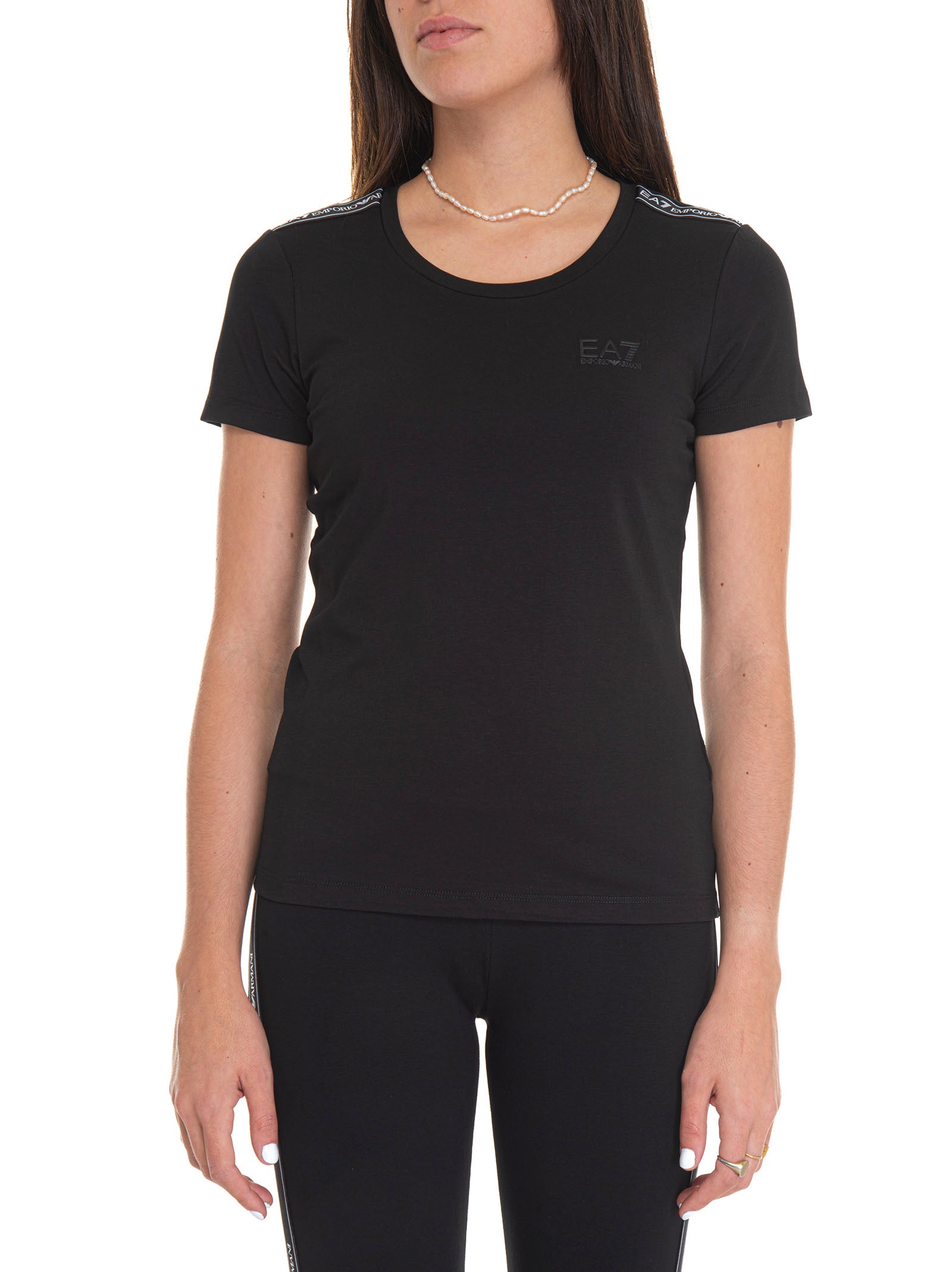T-shirt, girocollo, manica corta, logata, composizione: 71% cotone, 24% modal, 5% elastan, linea: EA7.