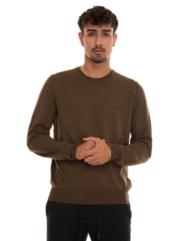 Pullover girocollo BOSS BOTTO-L, tinta unita, logo sul petto, composizione: 100% lana, linea: BOSS.