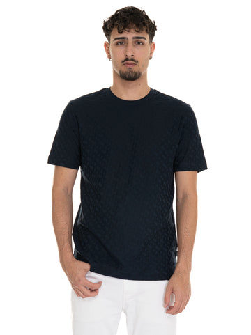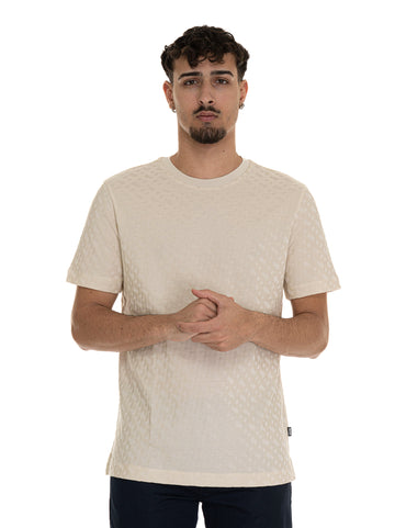 T-shirt girocollo mezza manica BOSS H-TESSLER145, microfantasia, profili in contrasto di colore, spacchetti laterali, linguetta...
