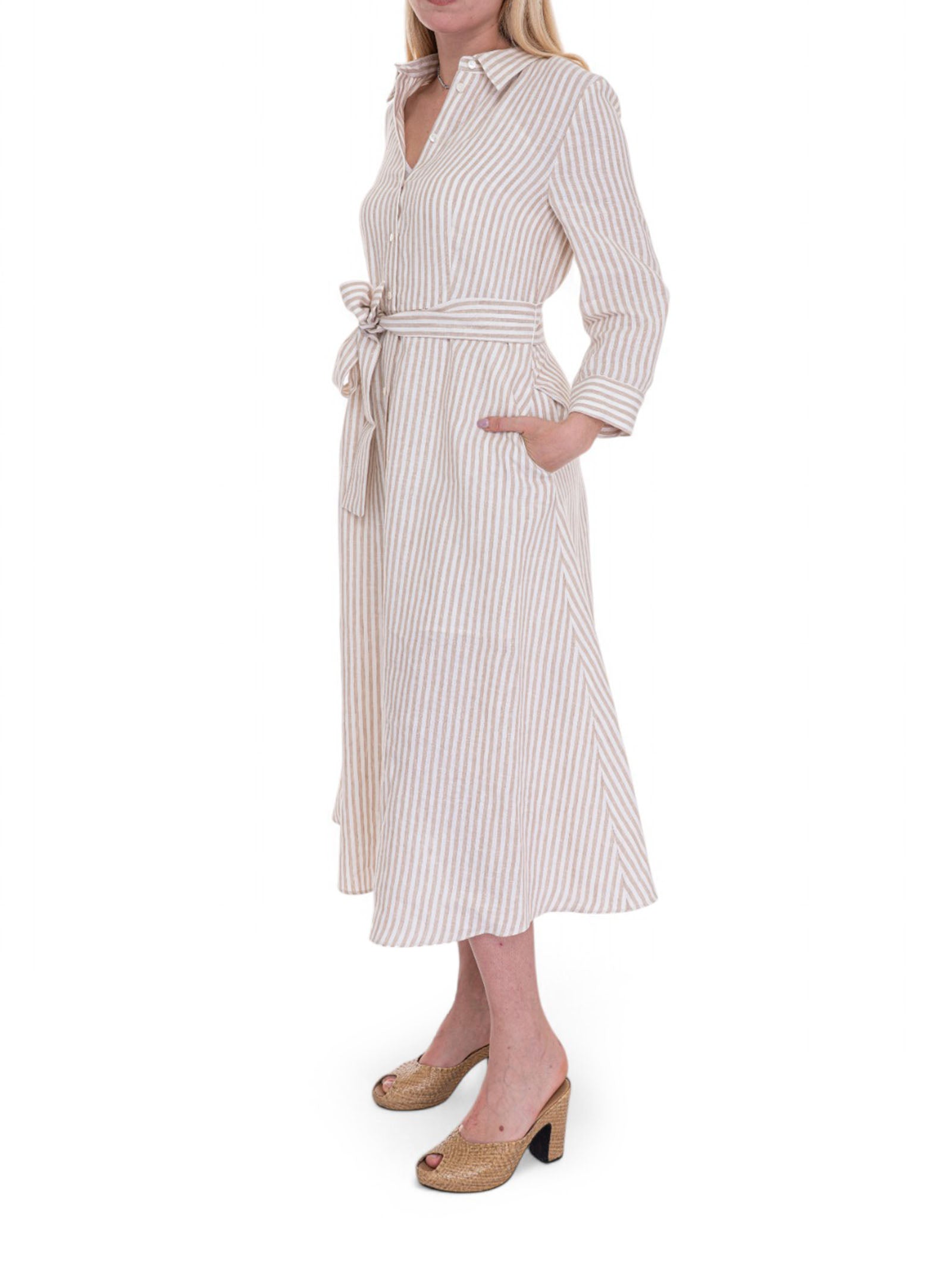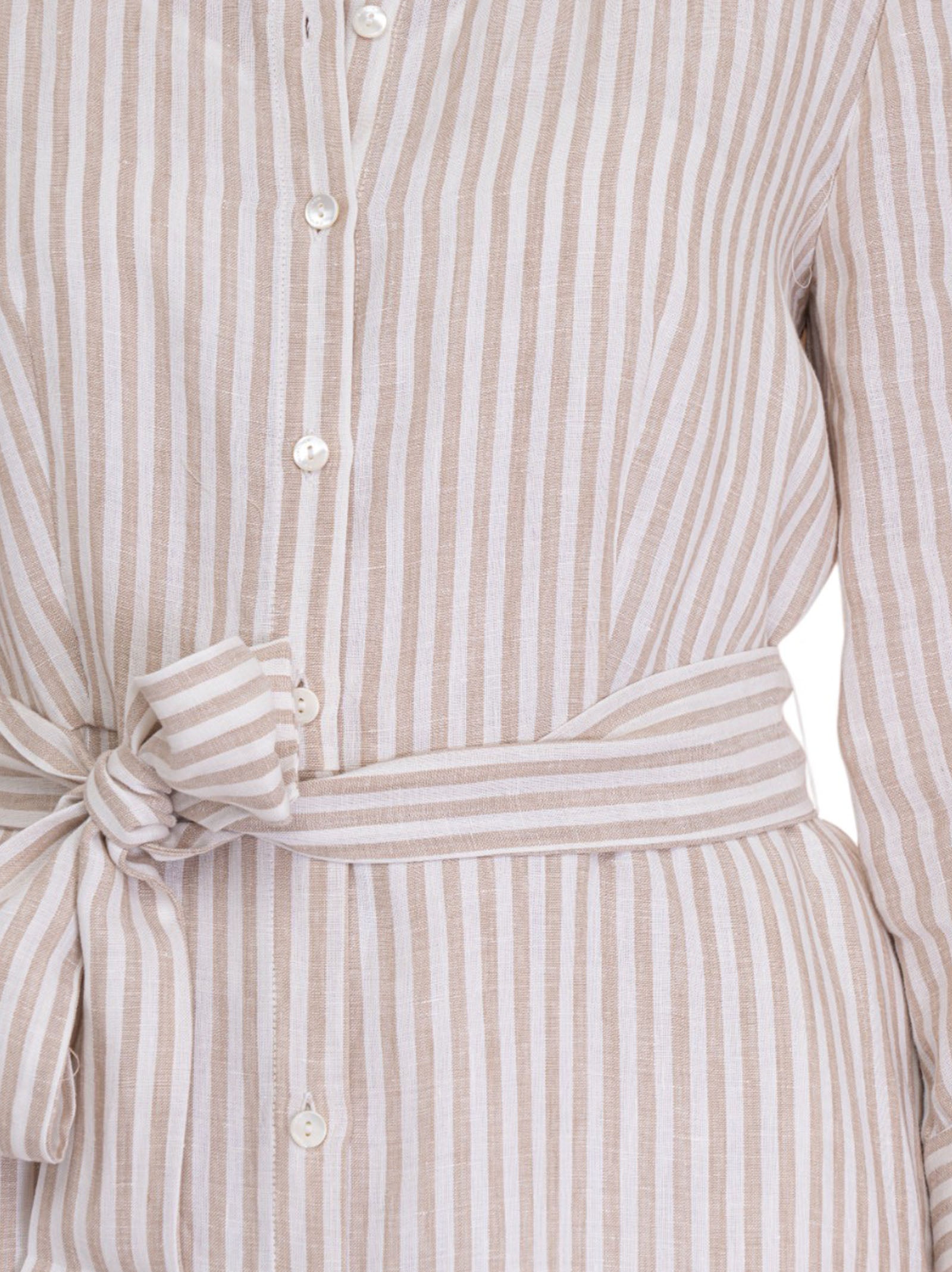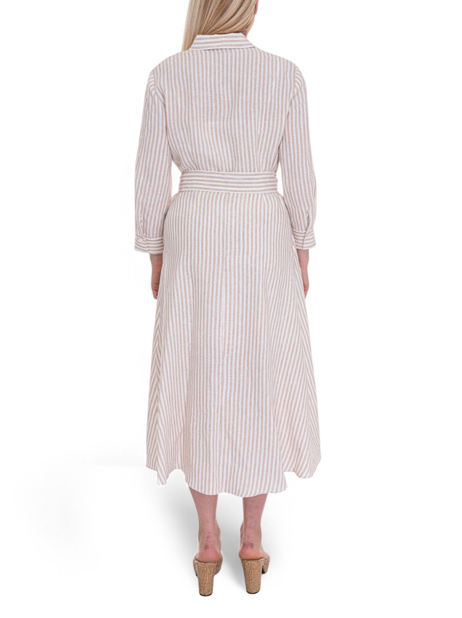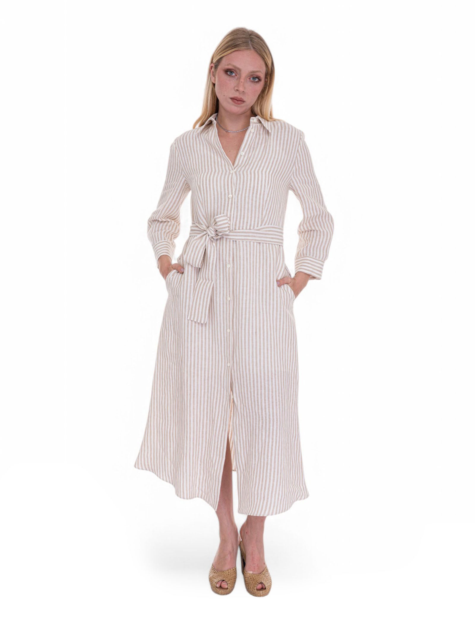 Abito chemisier Pennyblack Stoma, cintura in vita, manica ad orologio, tasche sui fianchi a scomparsa, righe a contrasto di colore, foderato, composizione: 100% lino, interno: 100% cotone, linea: PENNYBLACK.