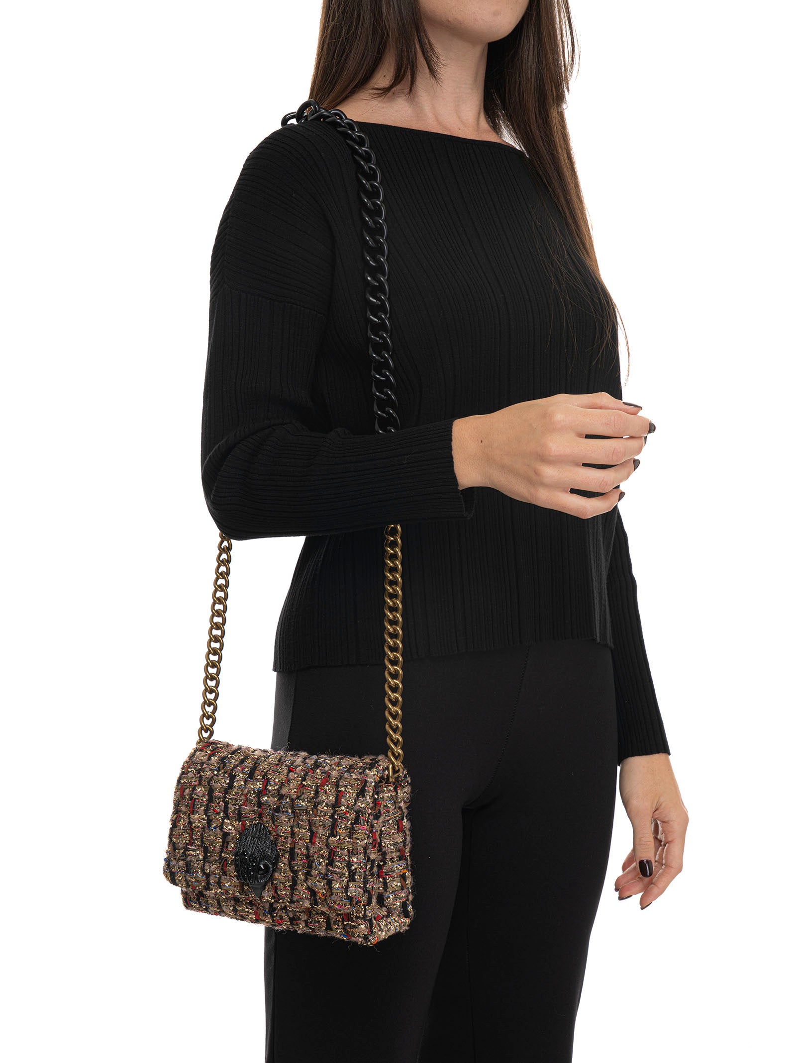 Borsa in tessuto Kurt Geiger Mini kensigton, tracolla a catena, chiusura con patta e bottone automatico, tessuto bouclè, dettagli in lurex, composizione: 100% poliestere, linea: KURT GEIGER.