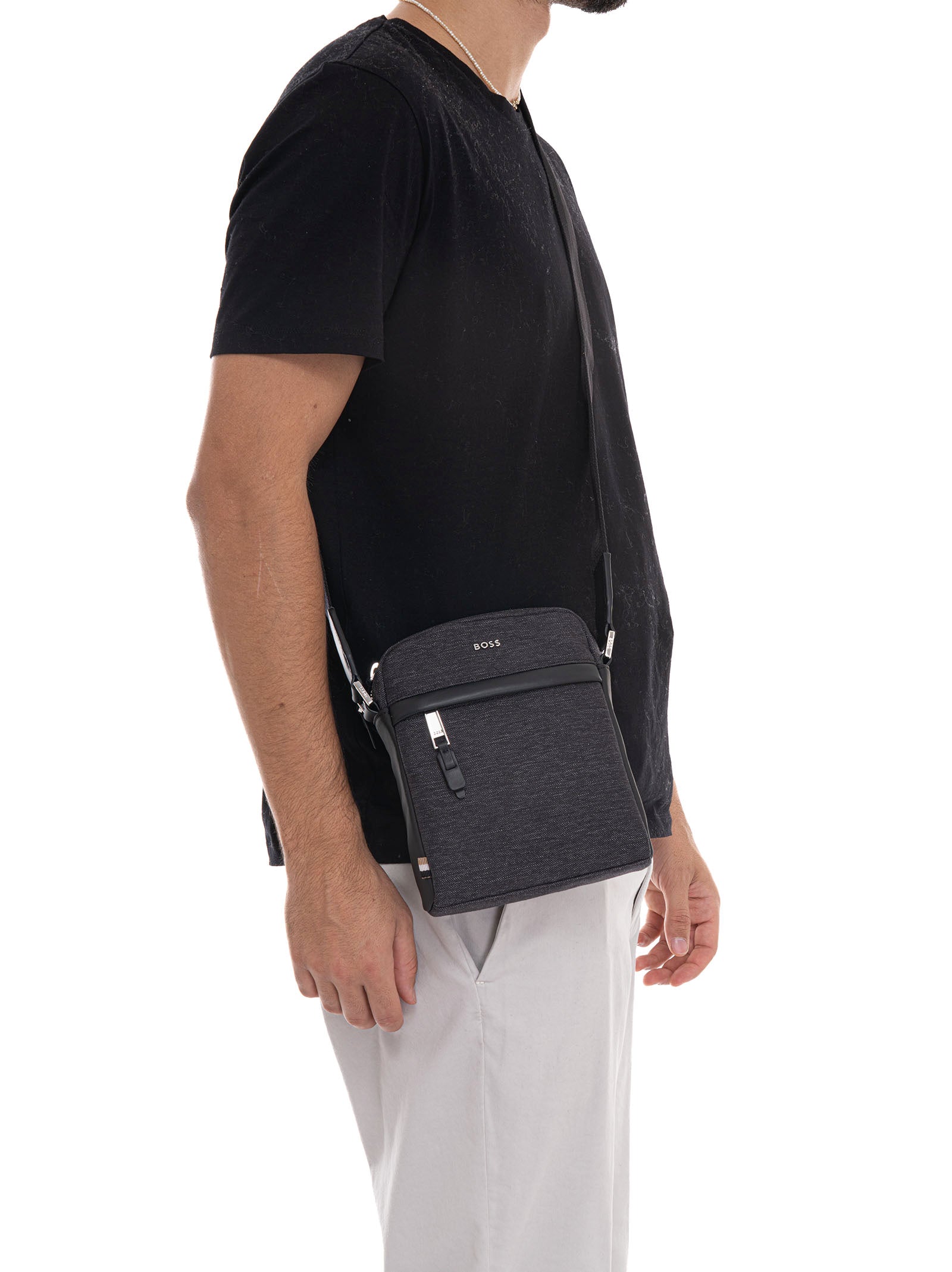 Borsello in pelle e tessuto HIGHWAY Grigio BOSS Uomo