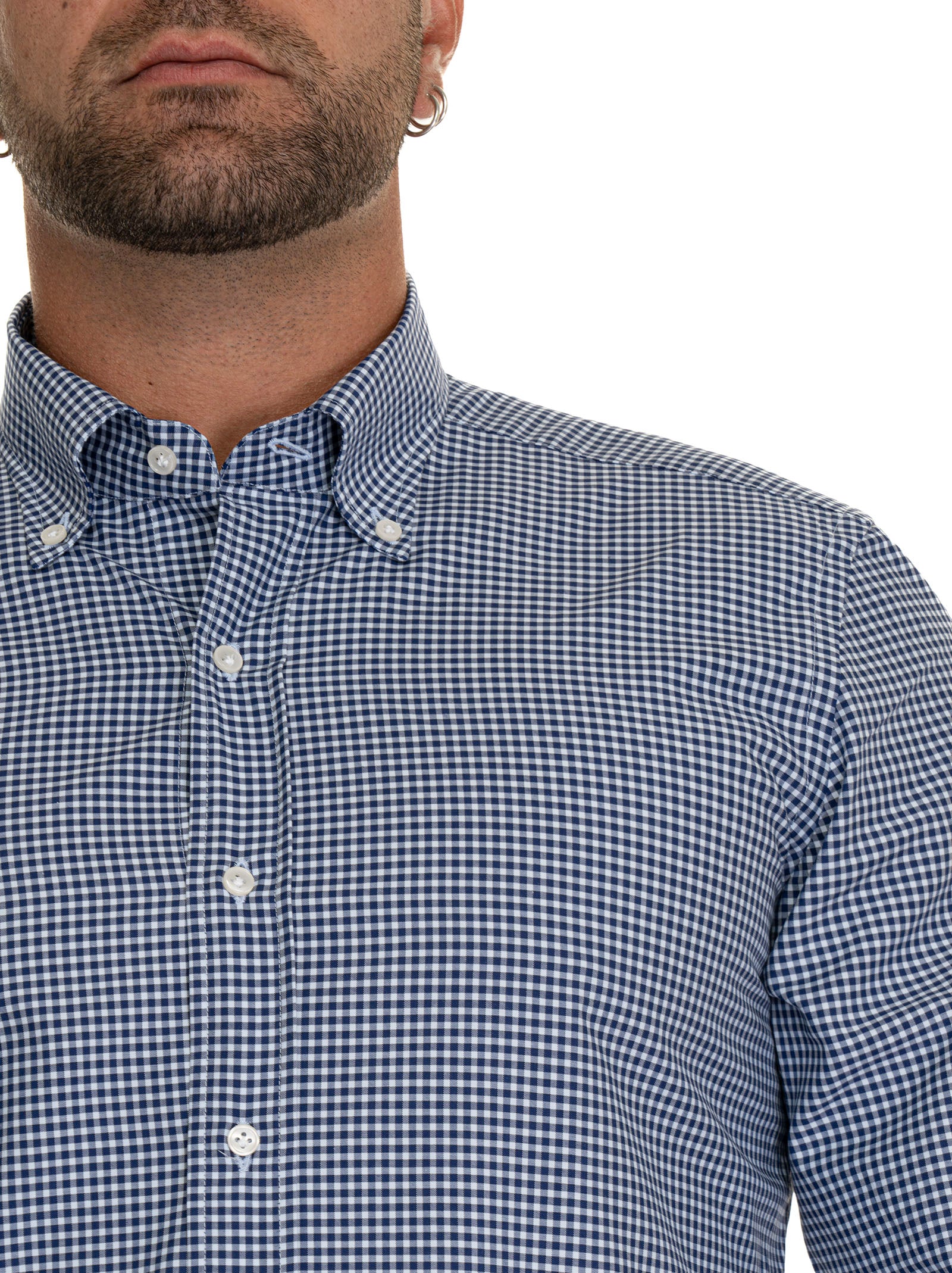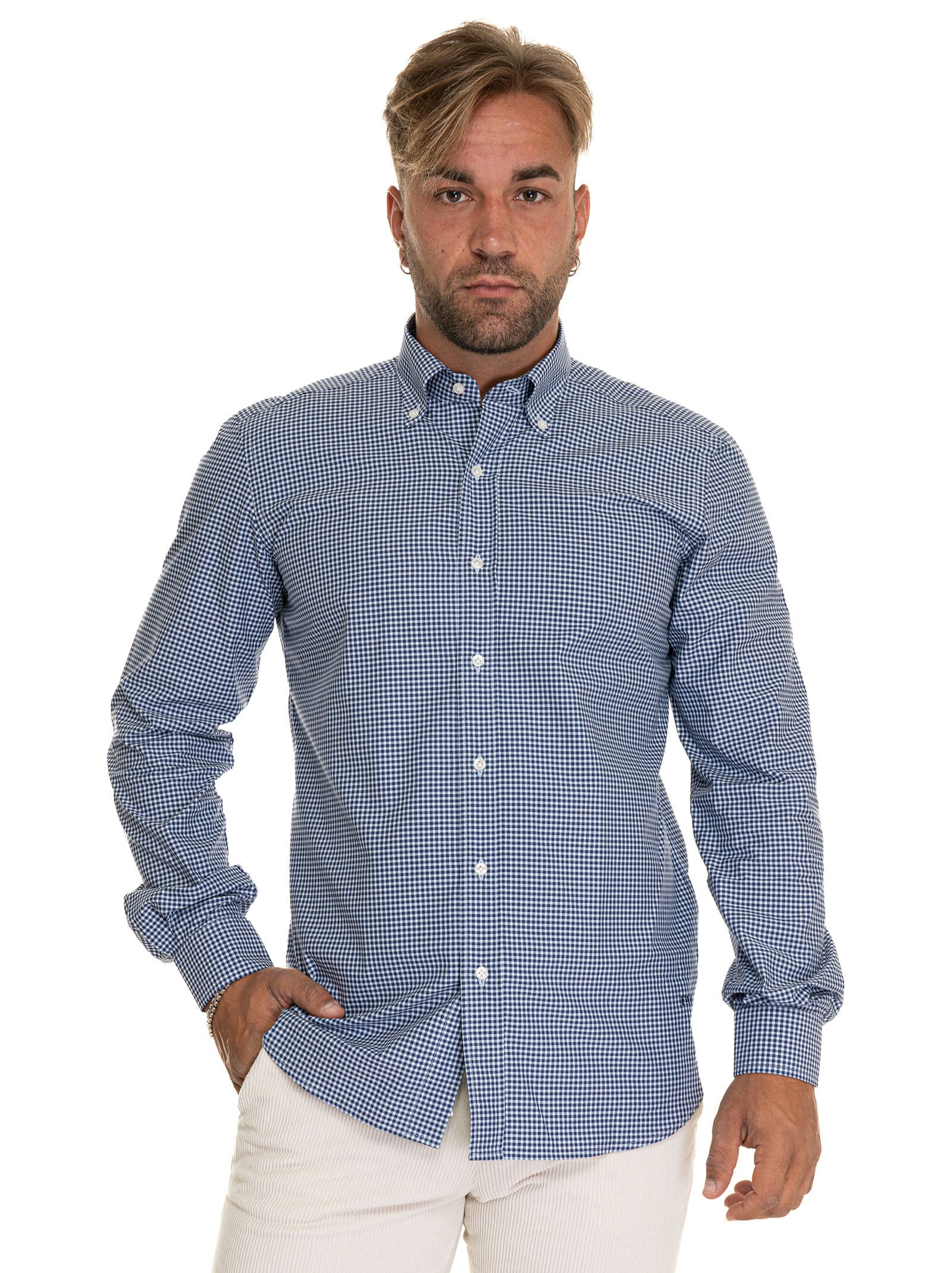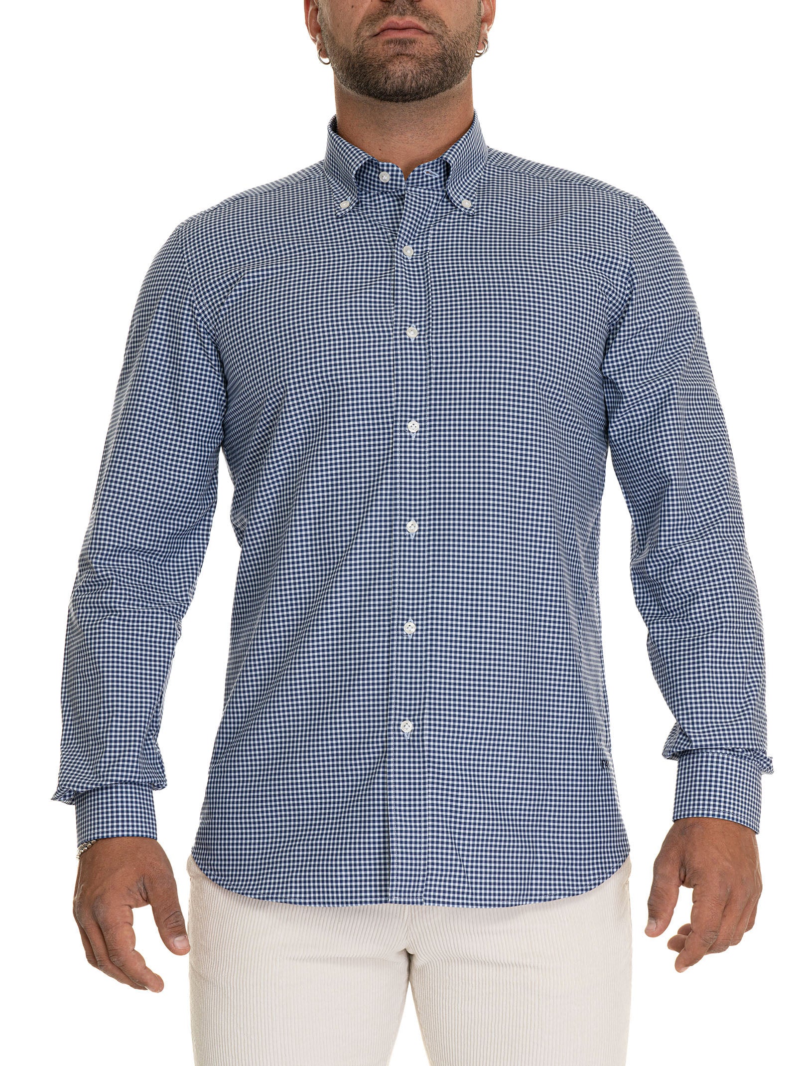 Camicia casual, collo button-down, fantasia a quadri, schiena con due pinces, composizione: 100% cotone, linea: FAY.
