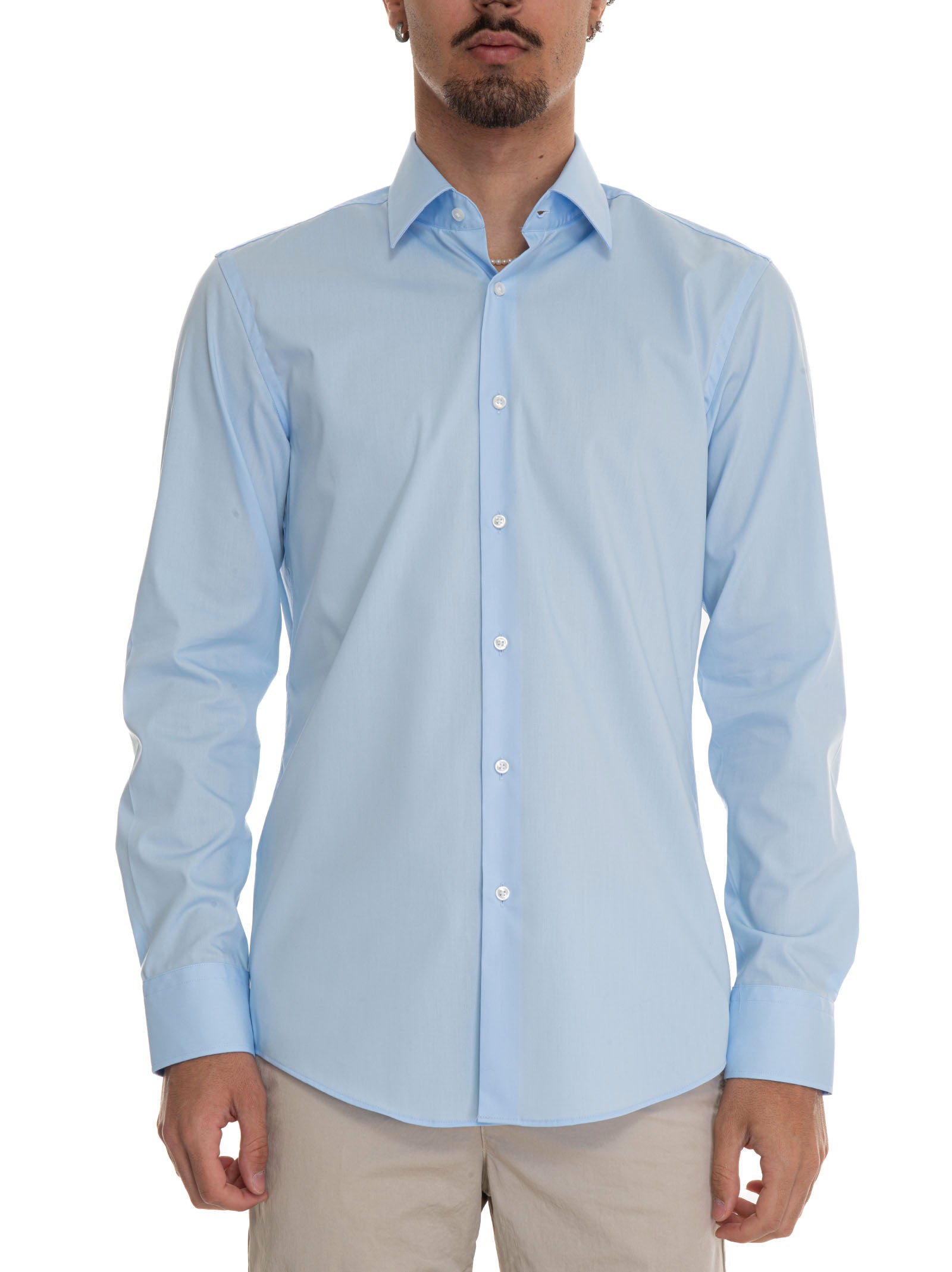 Camicia casual BOSS H-HANK-KENT, tinta unita, elasticizzata, composizione: 96% cotone, 4% elastan, linea: BOSS.