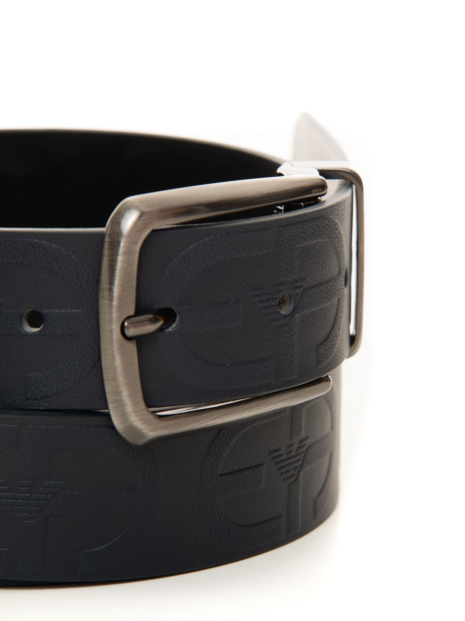 Cintura in pelle, reversibile, logata, fibbia argentata, la lunghezza è modificabile tagliando la cintura, taglia unica, composizione: 100% pelle, linea: EMPORIO ARMANI.