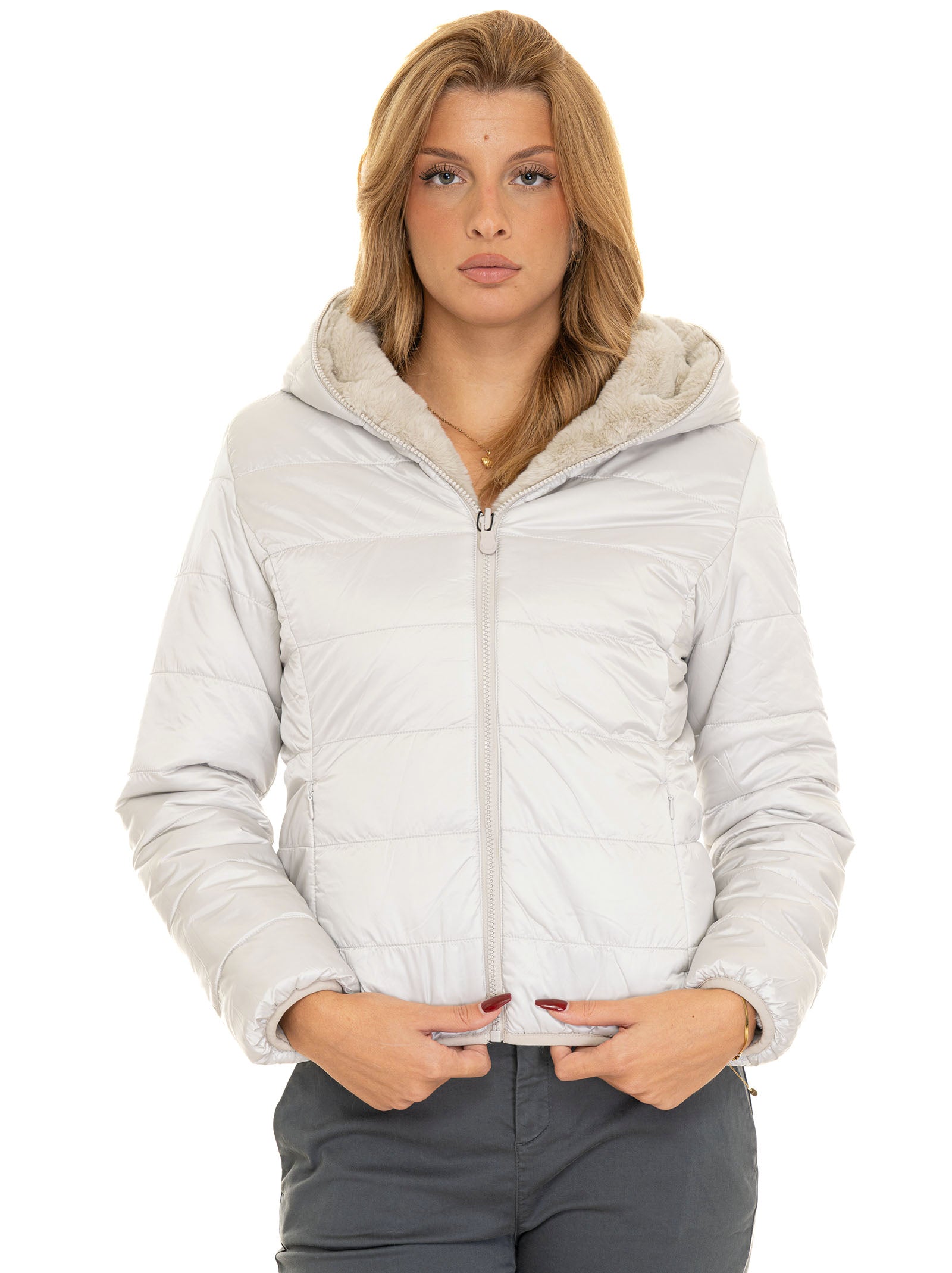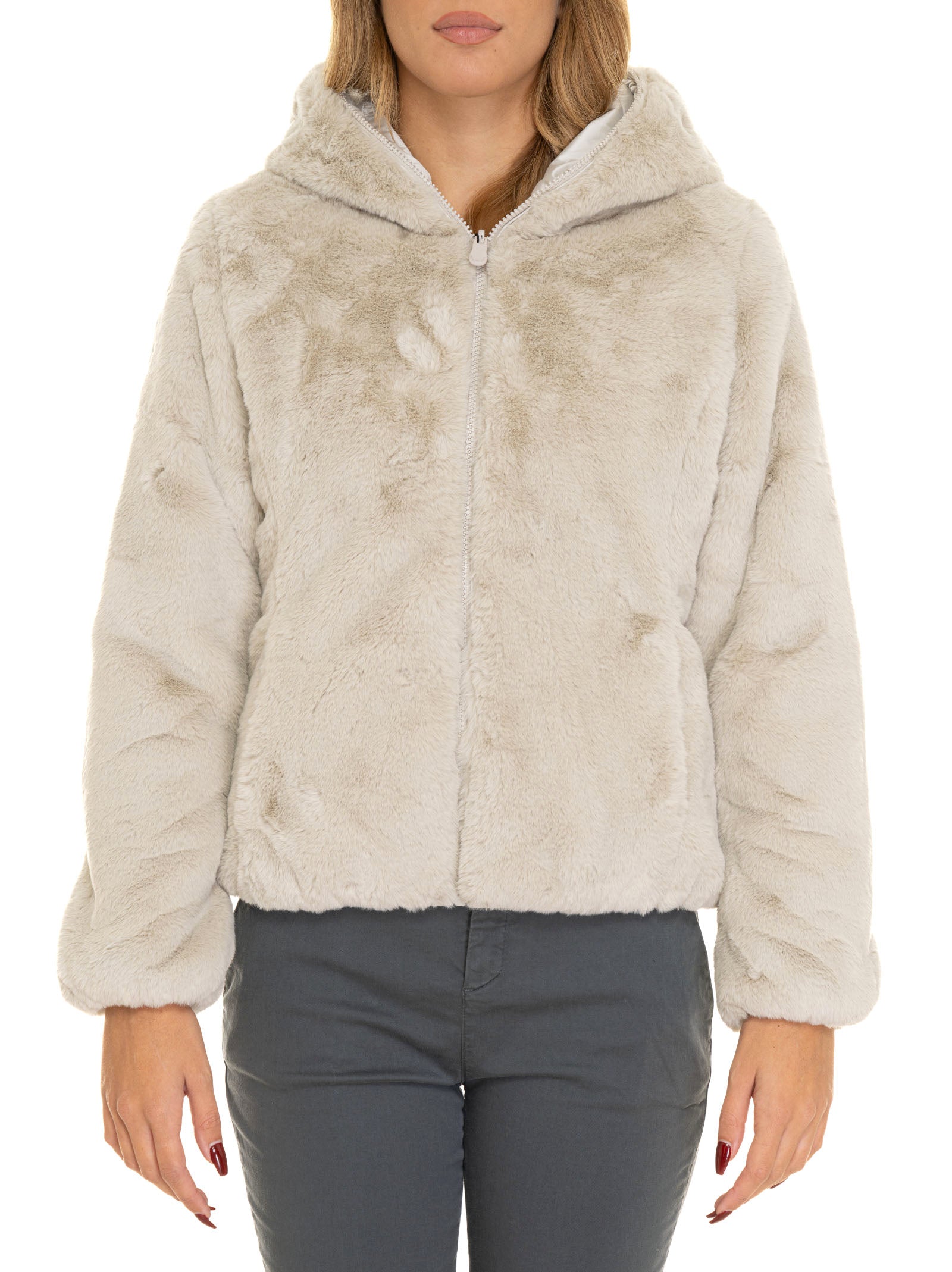Giubbino corto Save the Duck  Laila , con cappuccio, reversibile, pelliccia ecologica, tasche laterali, chiusura zip con doppio cursore, logo sul braccio, composizione: 100% poliestere, interno: 100% poliestere,   linea: SAVE THE DUCK.
