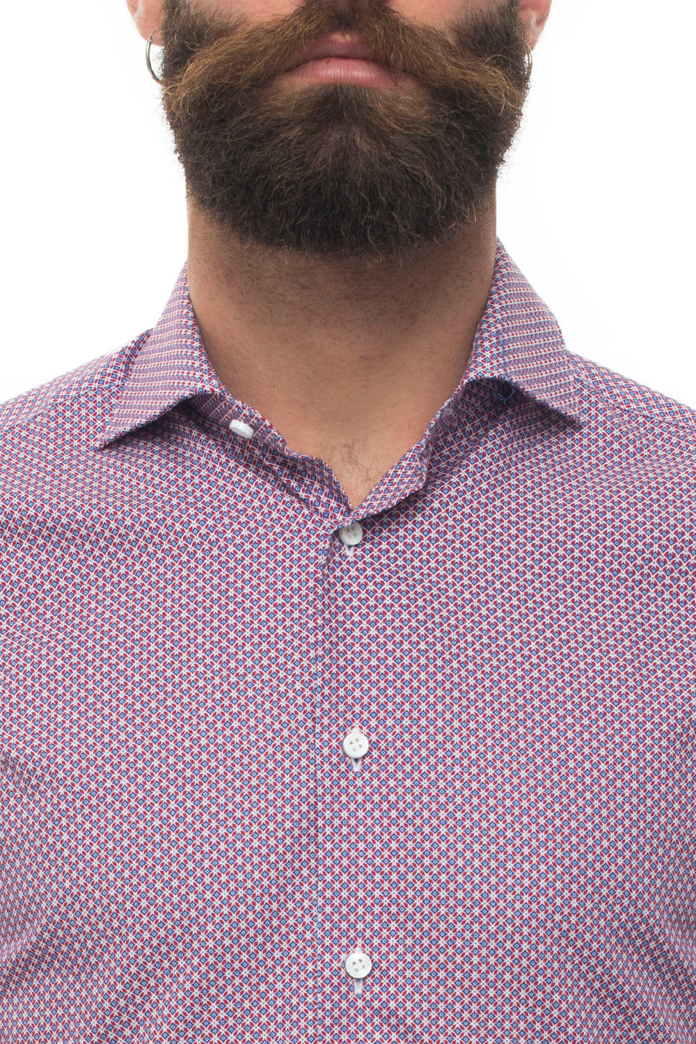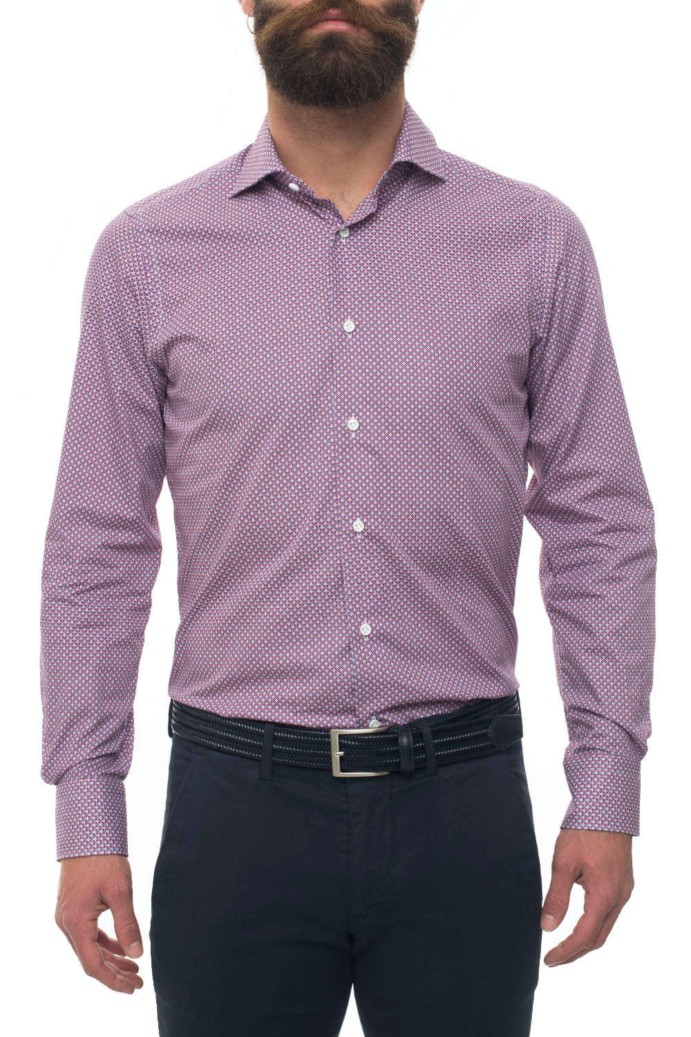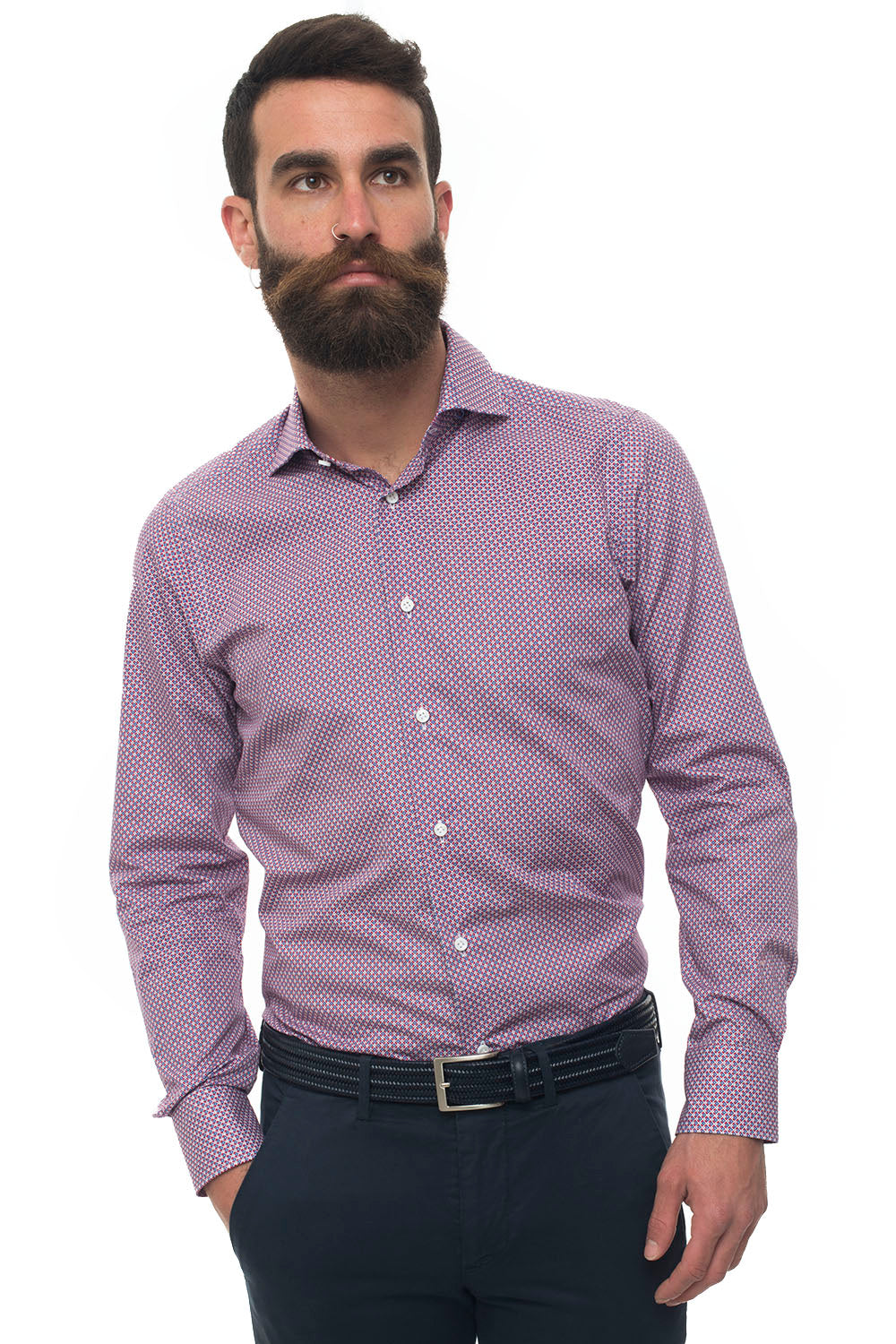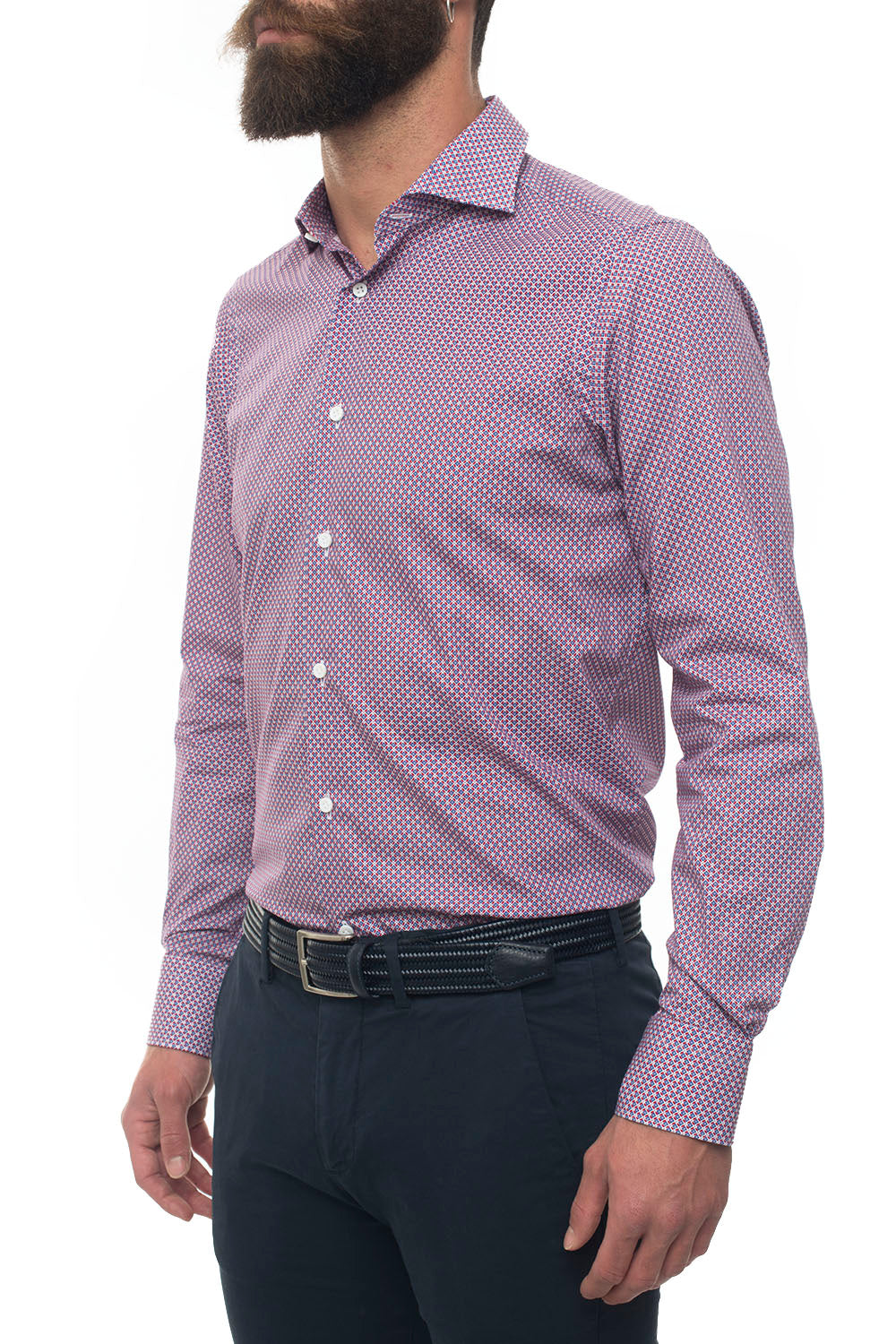 Camicia casual, collo francese, fantasia geometrica, made in italy, vestibilità dressed, composizione: 100% cotone, linea: CARREL.