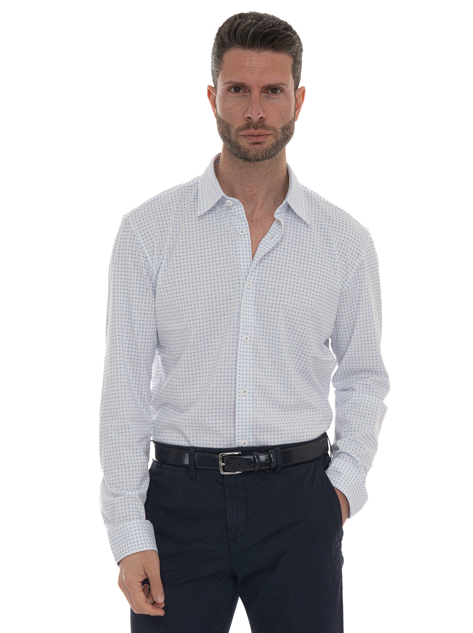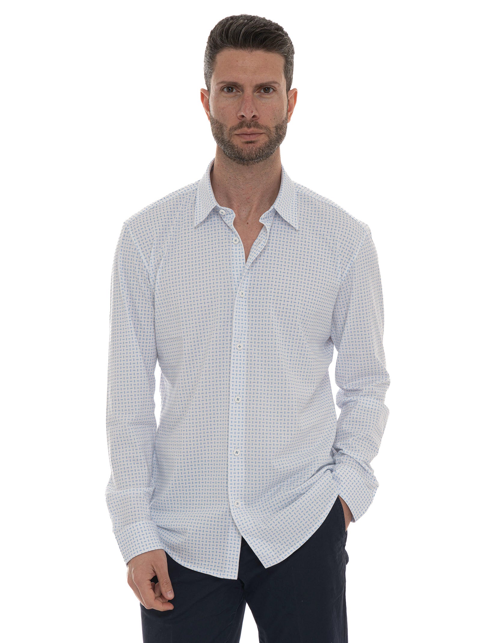 Camicia casual BOSS P-ROAN-KENT, collo classico italiano, schiena con due pinces, microfantasia, elasticizzata, composizione: 75% cotone, 25% poliestere, linea: BOSS.