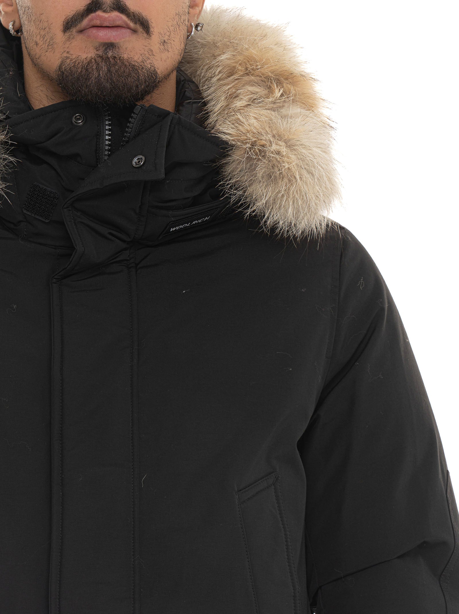 Giaccone con cappuccio Woolrich Polar hight collar df , pelliccia removibile, chiusura zip con doppio cursore + bottoni, tasche sui fianchi a scomparsa, tasche interne multifunzione, linguetta con logo, polsino antivento, composizione: 60% cotone, 40% poliammide, interno: 80% piumino di anatra, 20% piuma,  linea: WOOLRICH.