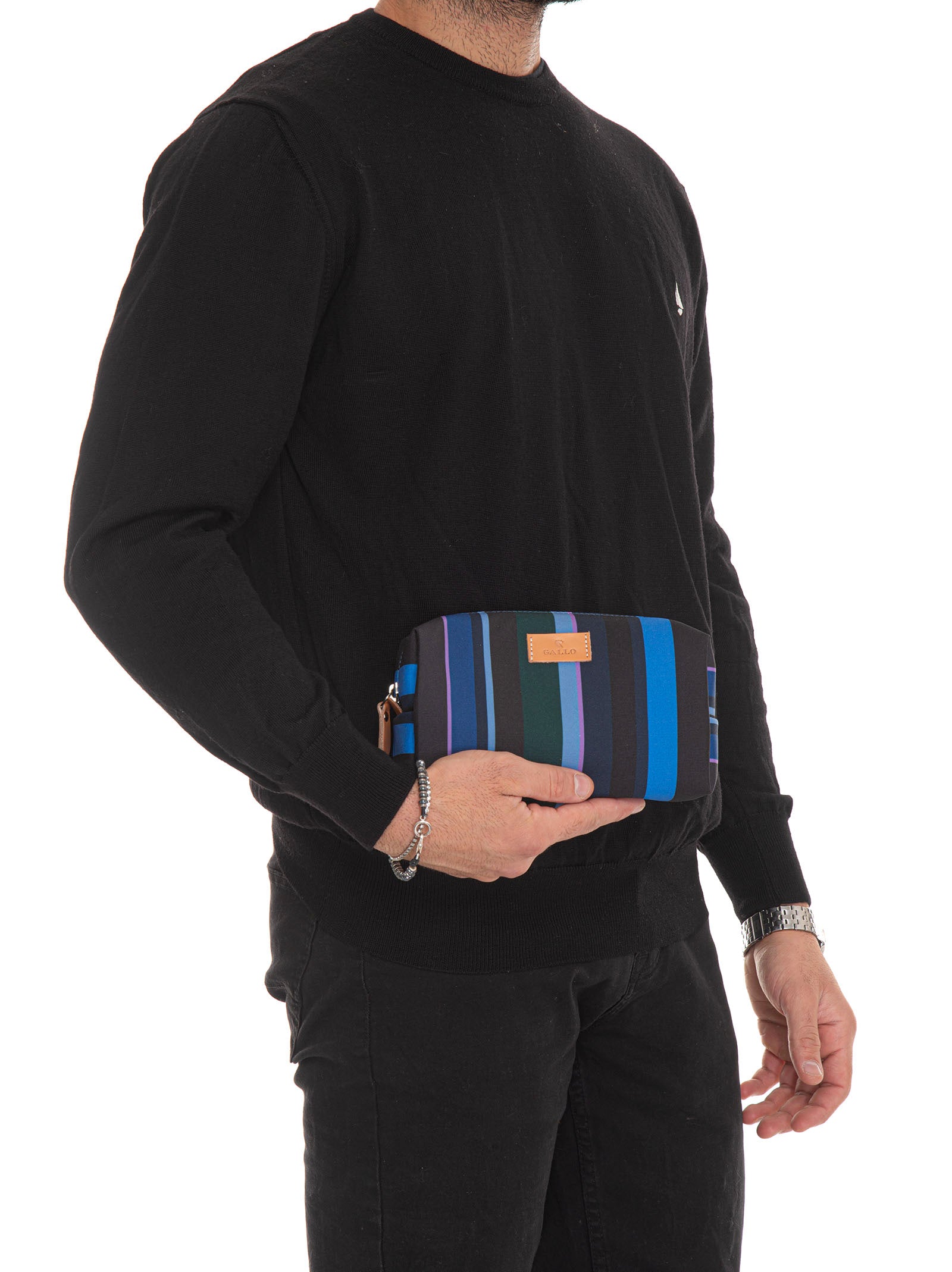 Pochette, chiusura zip, fantasia rigata, composizione: nylonlinea: GALLO.