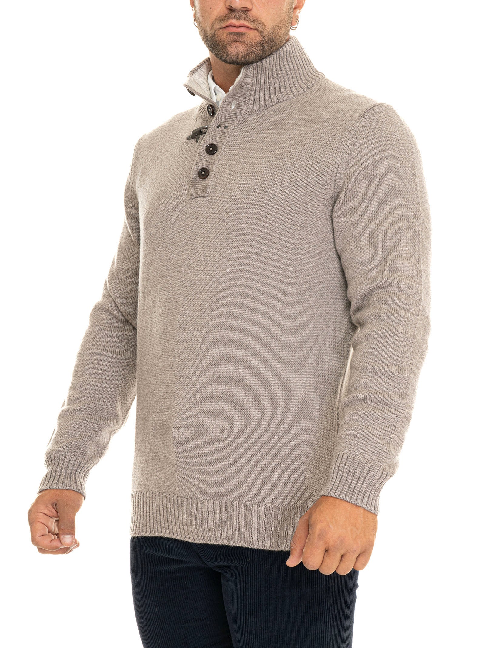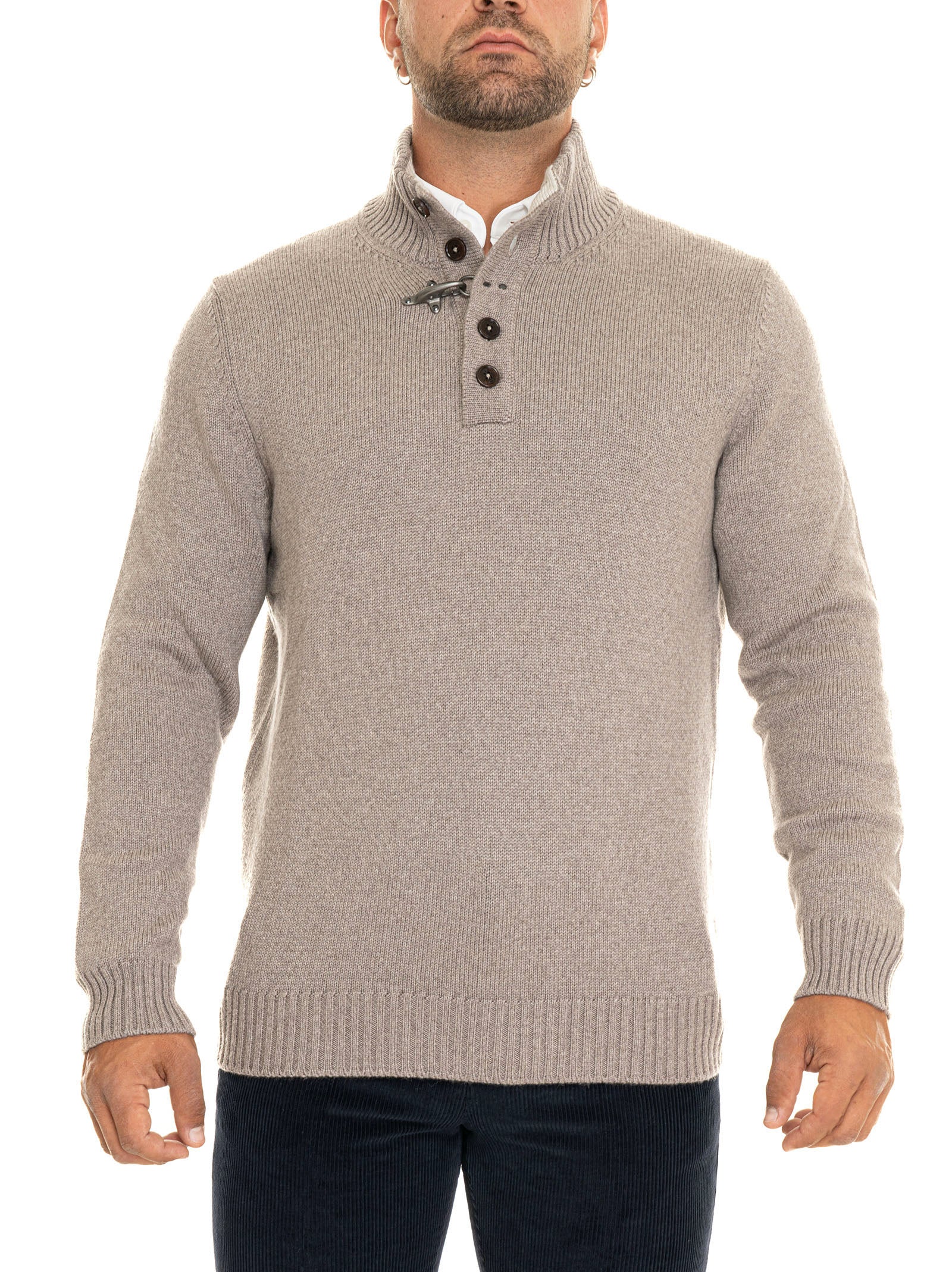 Pullover mezza zip, iconico gancio fay, tinta unita, chiusura con bottoncini logati, collo, polsi e fondo a costine, composizione: 100% lana, linea: FAY.