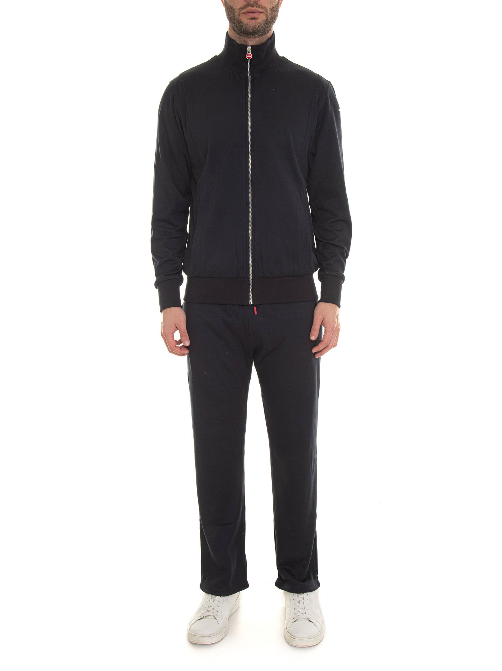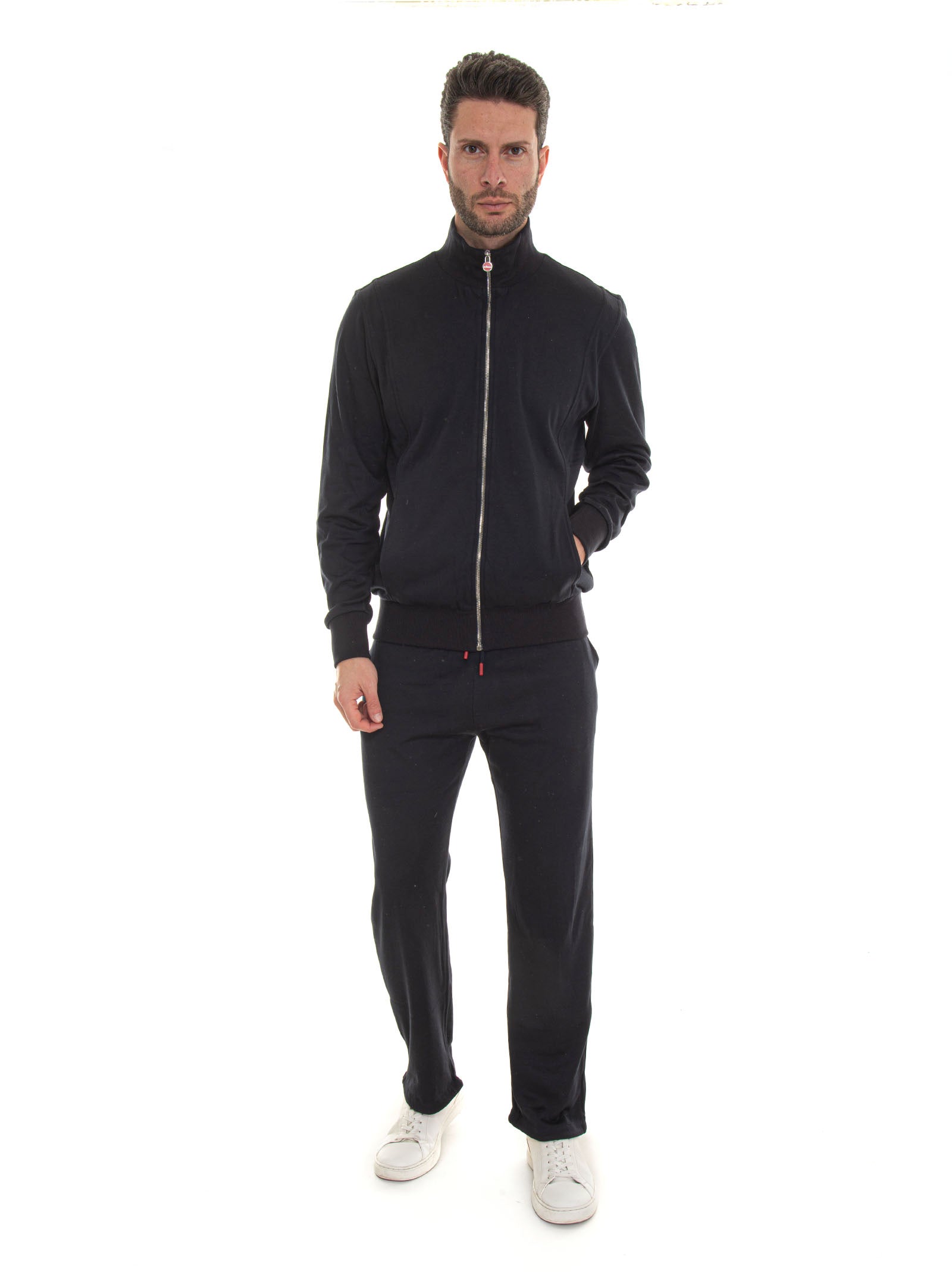 Tuta sportiva, chiusura con zip, pantalone morbido, tasche a filo, fondo 20 cm, tasca posteriore con chiusura zip, composizione: 68% cotone, 32% seta, linea: KITON.
