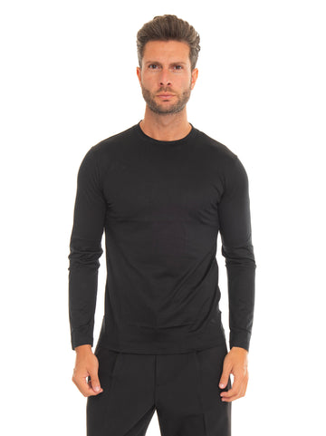 T-shirt girocollo, manica lunga, tinta unita, vestibilità aderente, composizione: 70% lyocell, 30% cotone, linea: EMPORIO...
