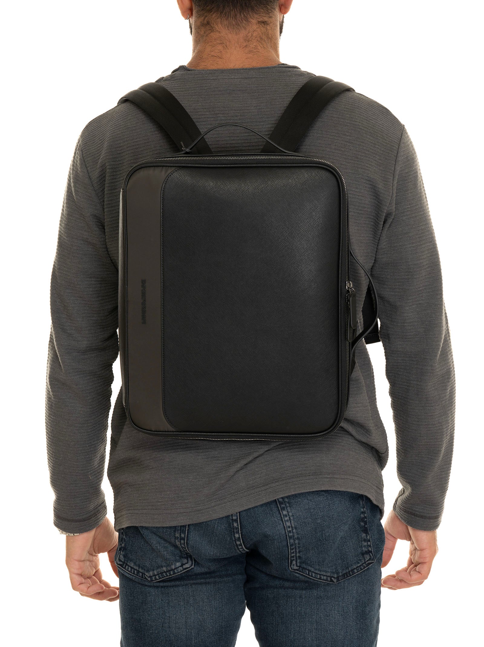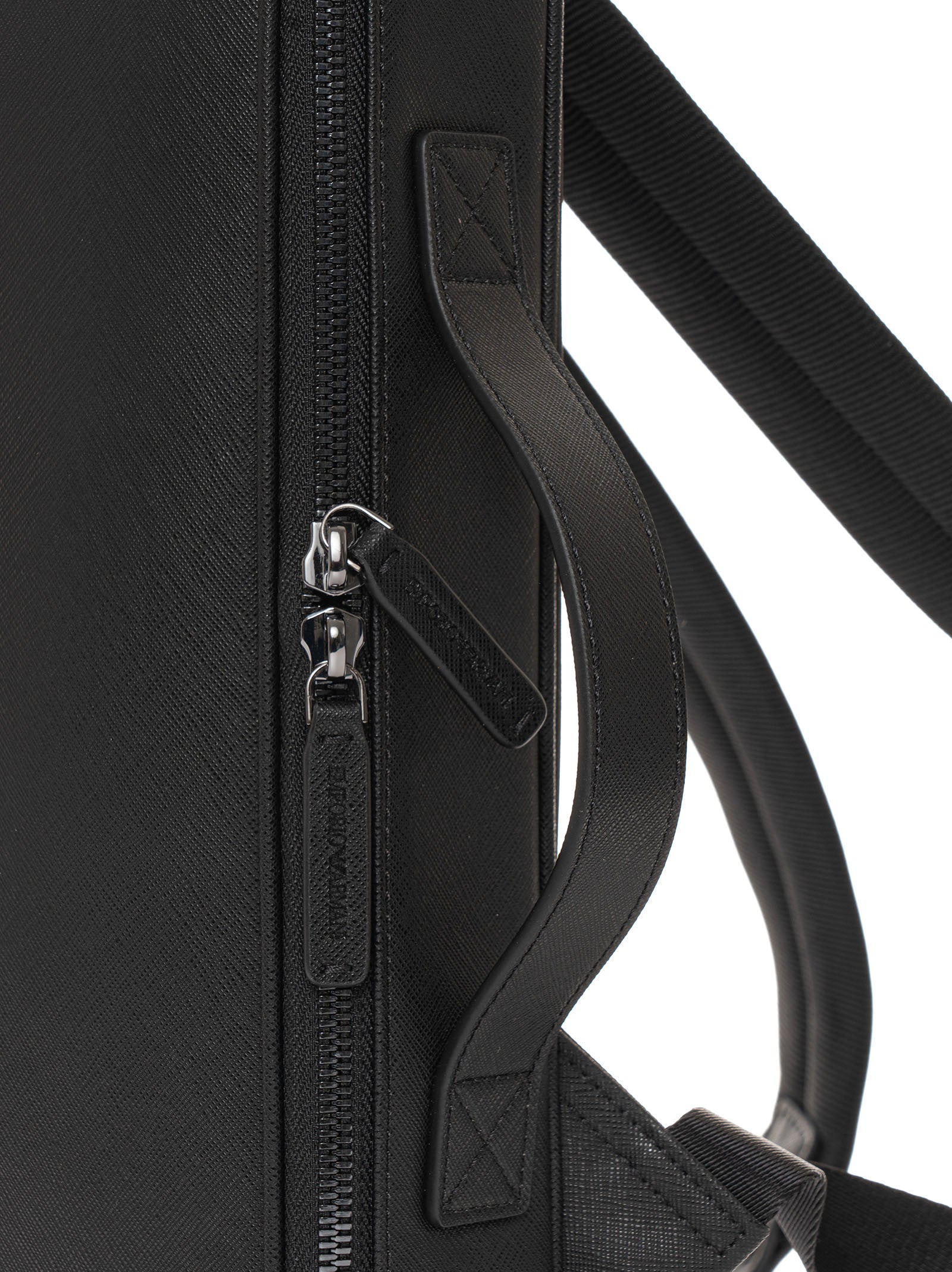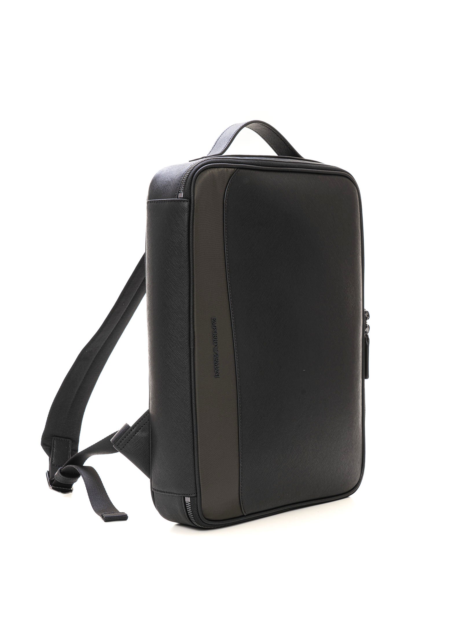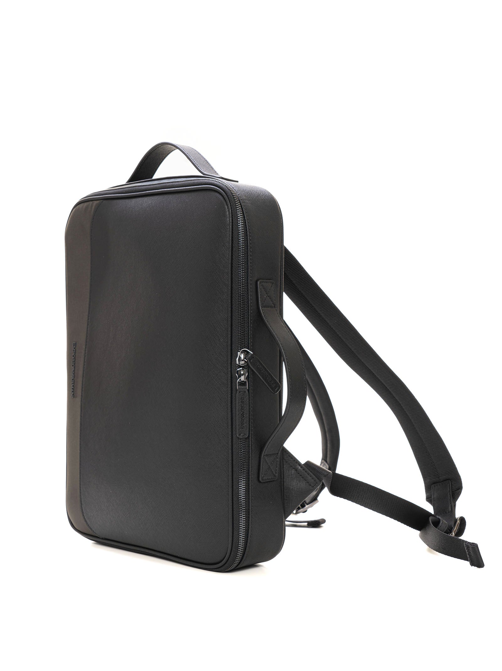 Borsa porta pc, chiusura con cerniera, spalline regolabili, tasche interne multifunzione, pelle saffiano, logo lettering applicato sul davanti, composizione: 100% pelle riciclata, linea: EMPORIO ARMANI.