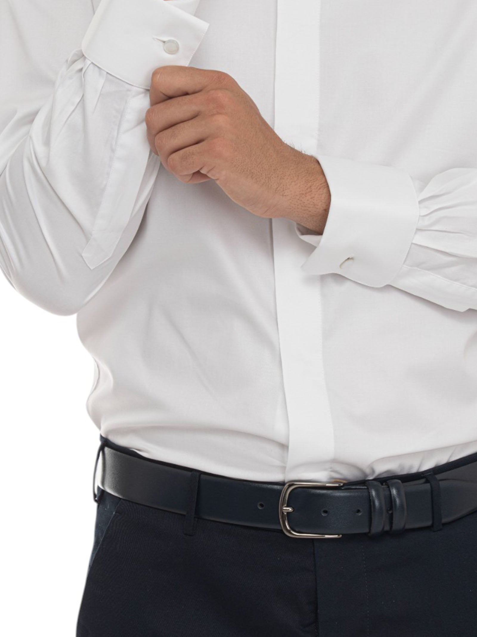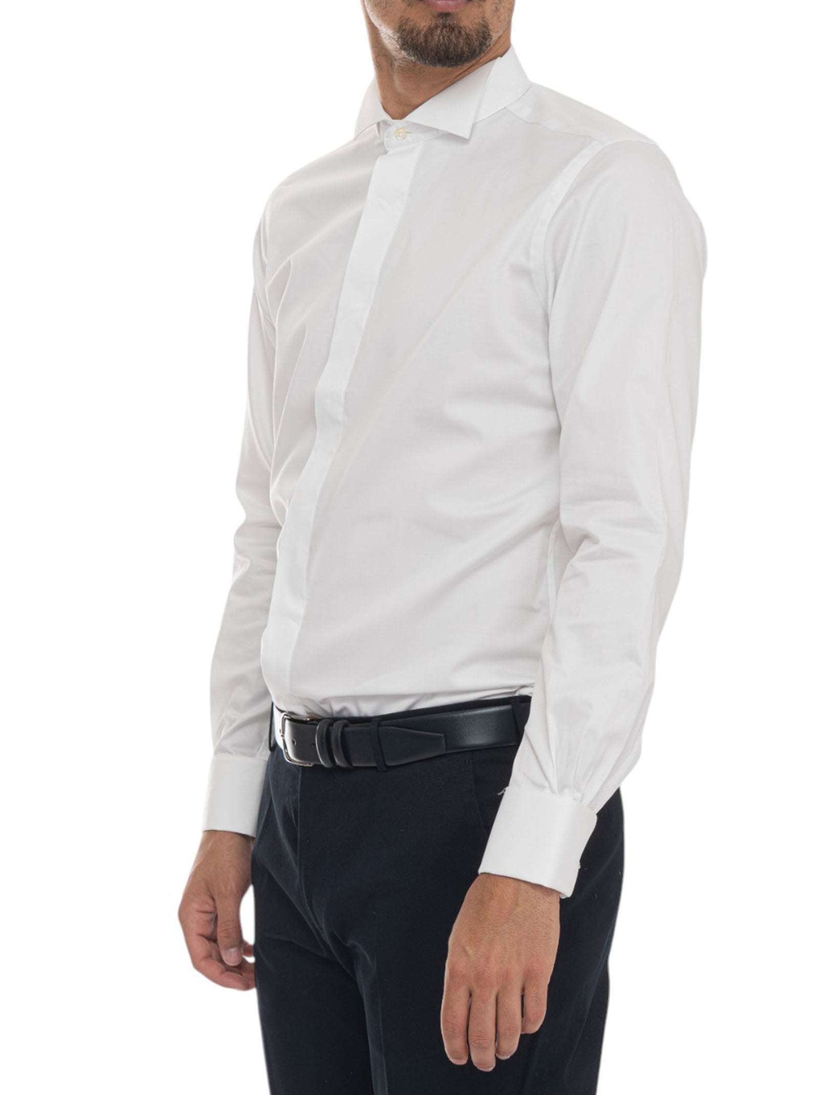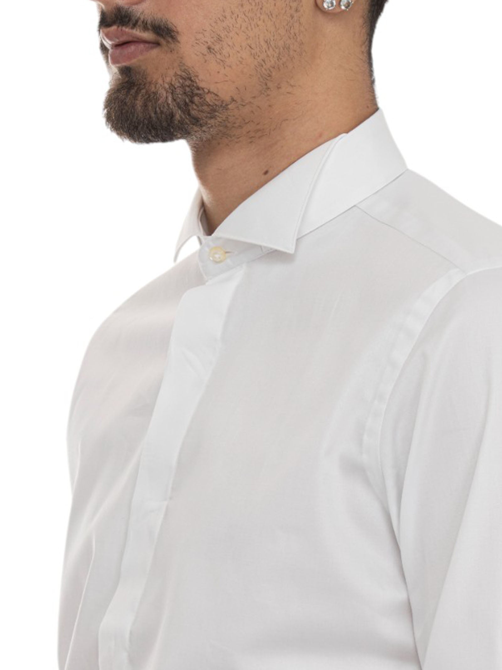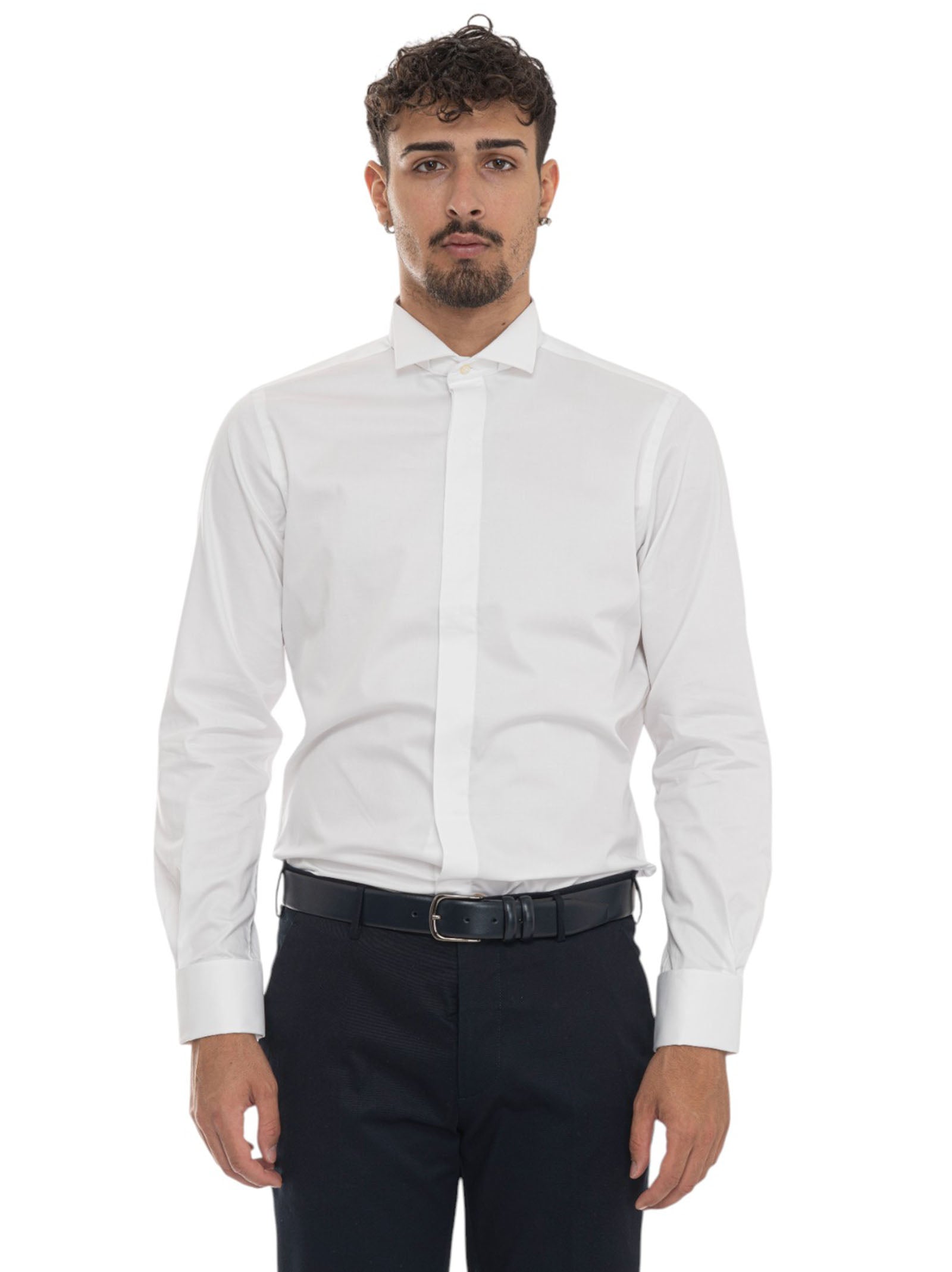 Camicia classica da uomo, collo diplomatico, tinta unita, polsino doppio con gemelli, pochette in abbinato, bottoni a scomparsa, composizione: 100% cotone, linea: CARREL.