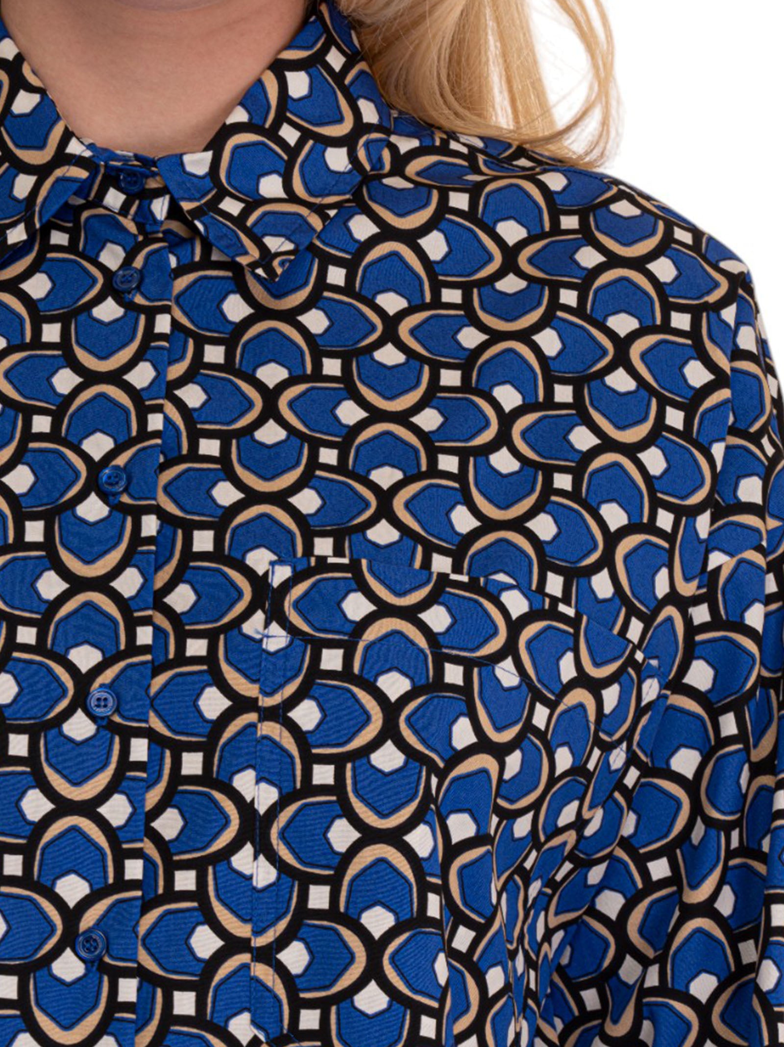 Camicia da donna in cotone Weekend Max Mara Ragtime, fantasia geometrica, modello boxy, spacchi laterali, tasca sul davanti, composizione: 100% cotone, linea: WEEKEND MAX MARA.