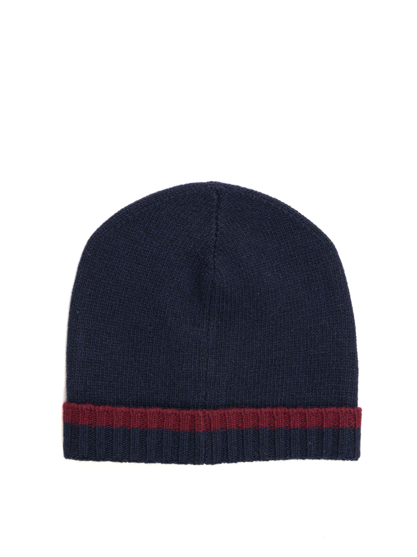 Cappello a coste, profili in contrasto, logato a contrasto, logo piccolo frontale, composizione: 90% lana, 10% cachemire, linea: HARMONT & BLAINE.