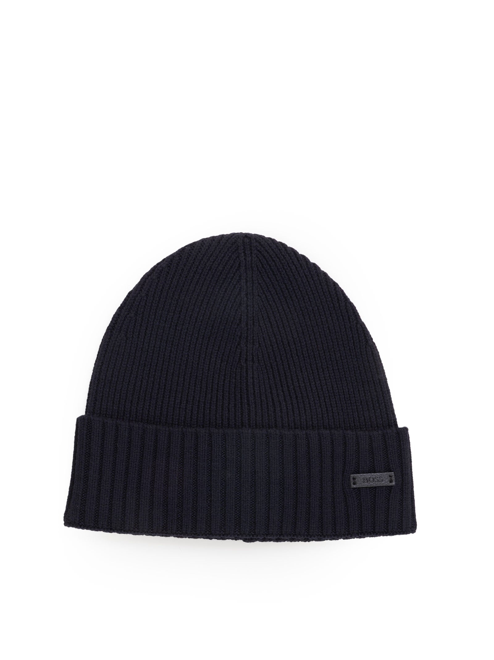 Cappello a coste BOSS FATI, logo frontale, tinta unita, composizione: 100% lana vergine, linea: BOSS.