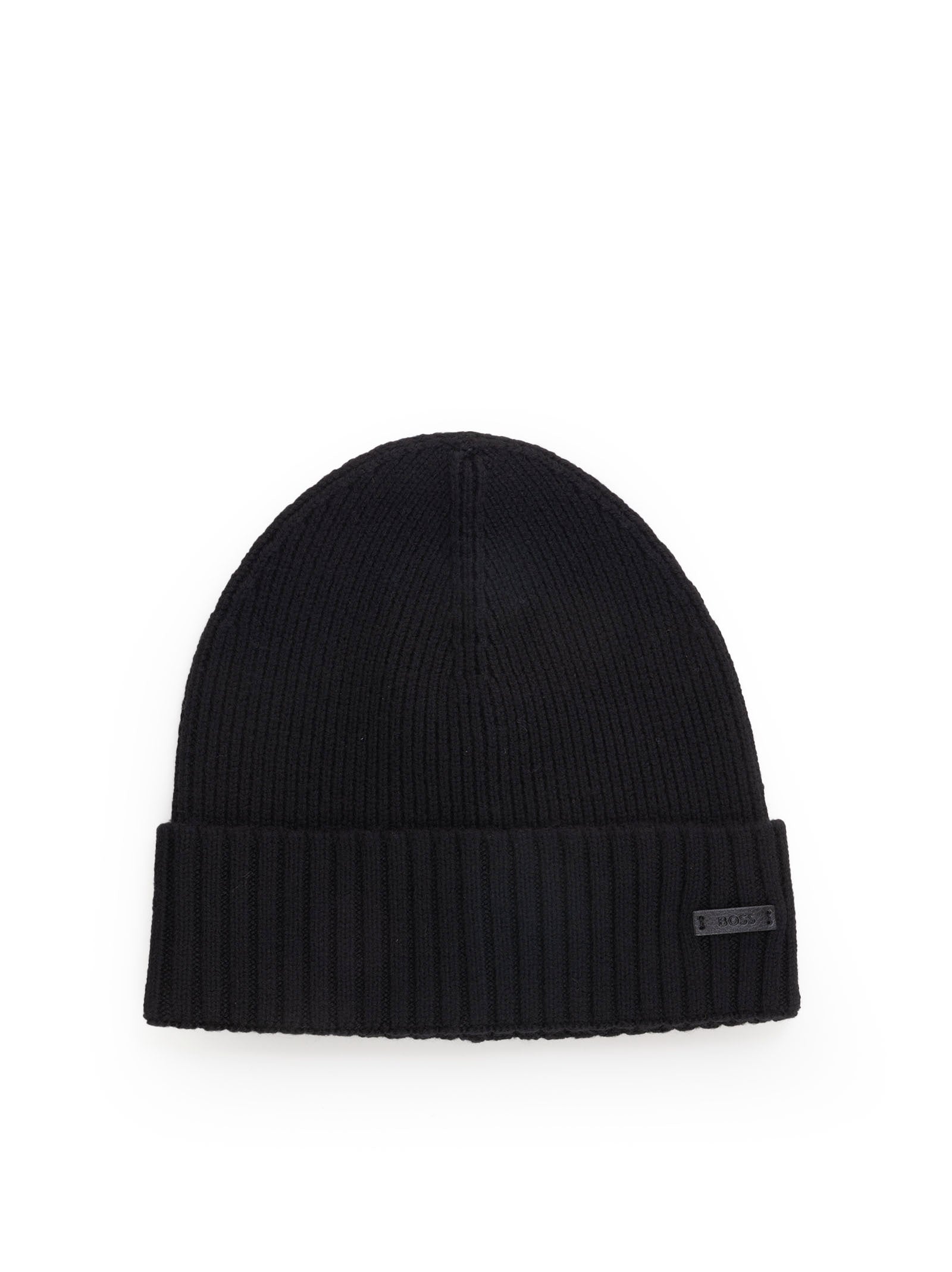 Cappello a coste BOSS FATI, logo frontale, tinta unita, composizione: 100% lana vergine, linea: BOSS.