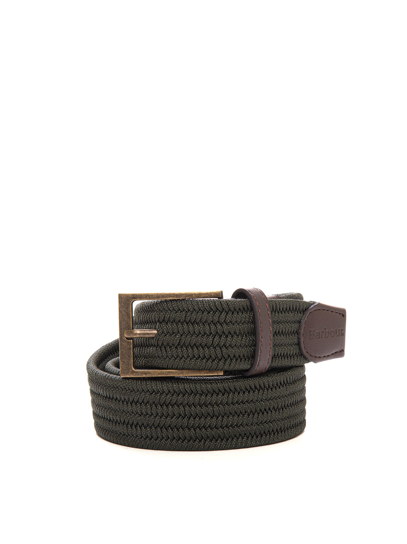 Cintura in corda, profili in pelle, fibbia dorata, logo cucito in tinta, composizione: 65% polypropylene, 35% elastan, linea: BARBOUR.