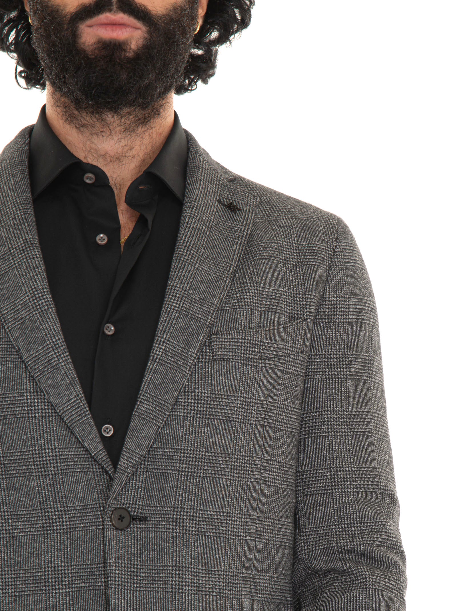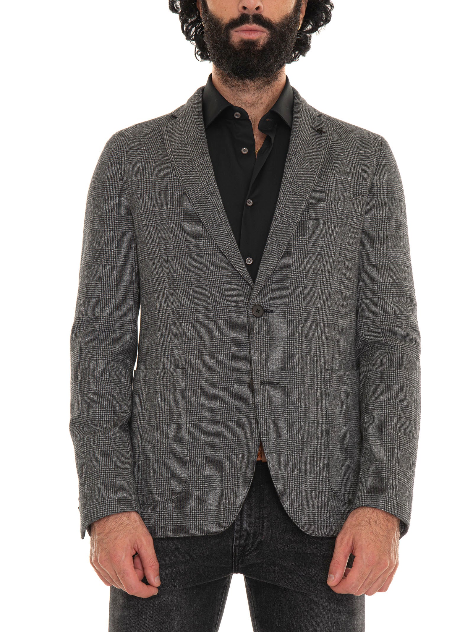 Giacca in jersey, chiusura a 2 bottoni, tasche a toppa, fantasia galles, lunghezza giacca 71cm (per tg.50), 2 spacchi laterali, sfoderata, composizione: 65% cotone, 35% poliestere, linea: MICHAEL KORS.