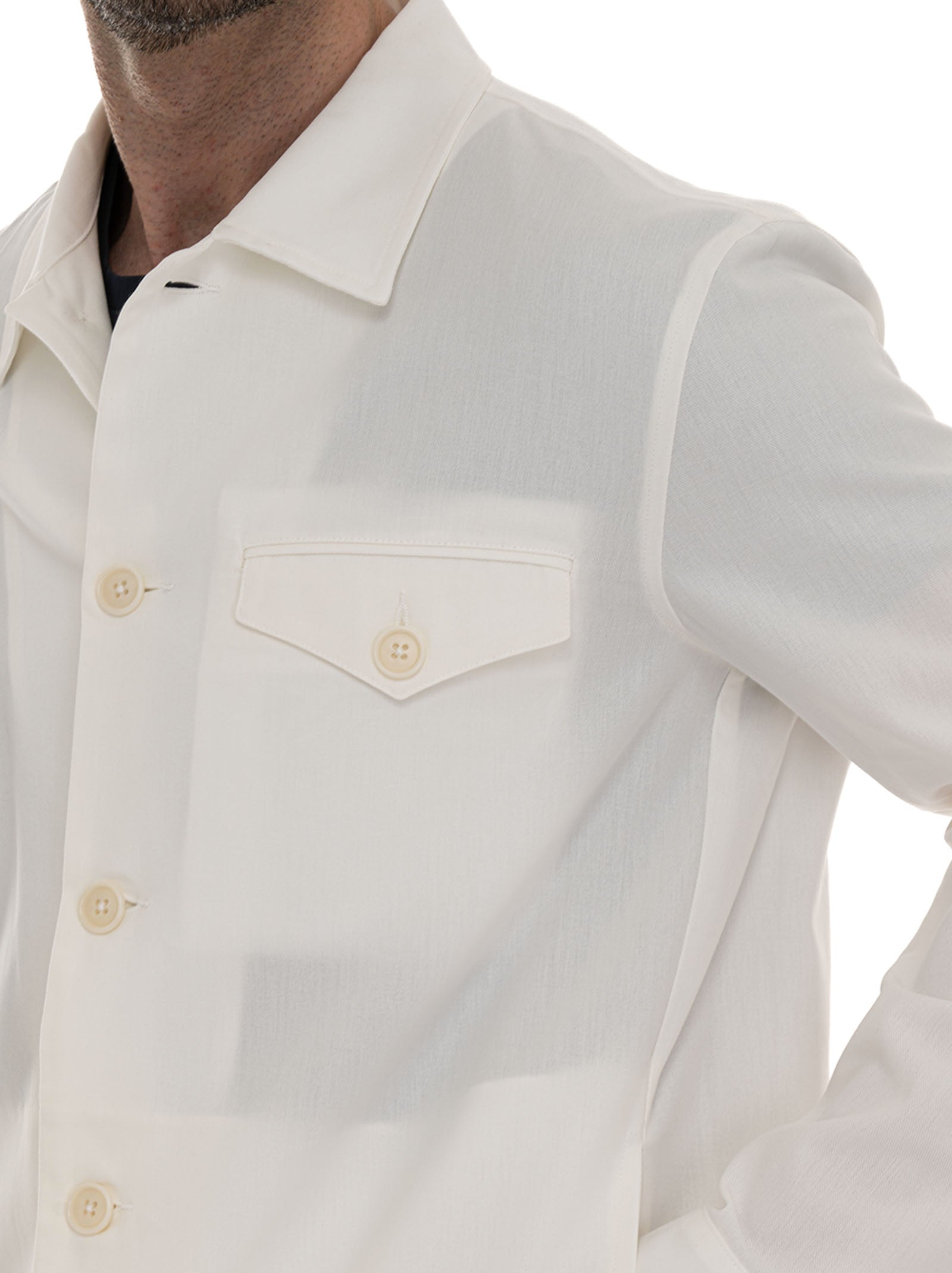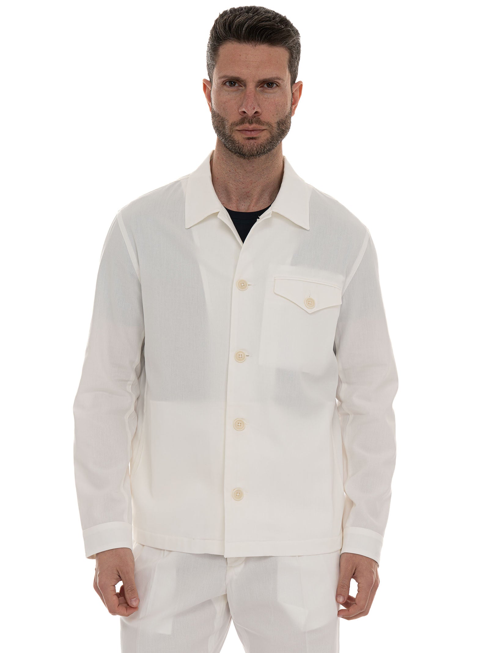 Overshirt Hindustrie BATAVIACREPE, tessuto ultra-leggero, chiusura bottoni, taschino sul petto, due tasche a filo, composizione: 100% cotone, linea: HINDUSTRIE.