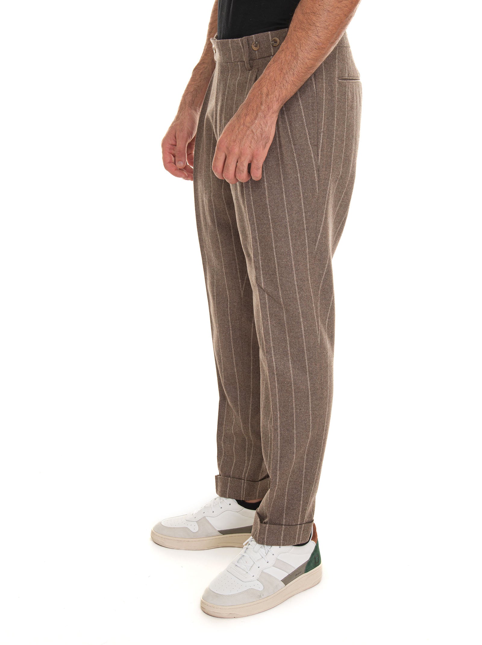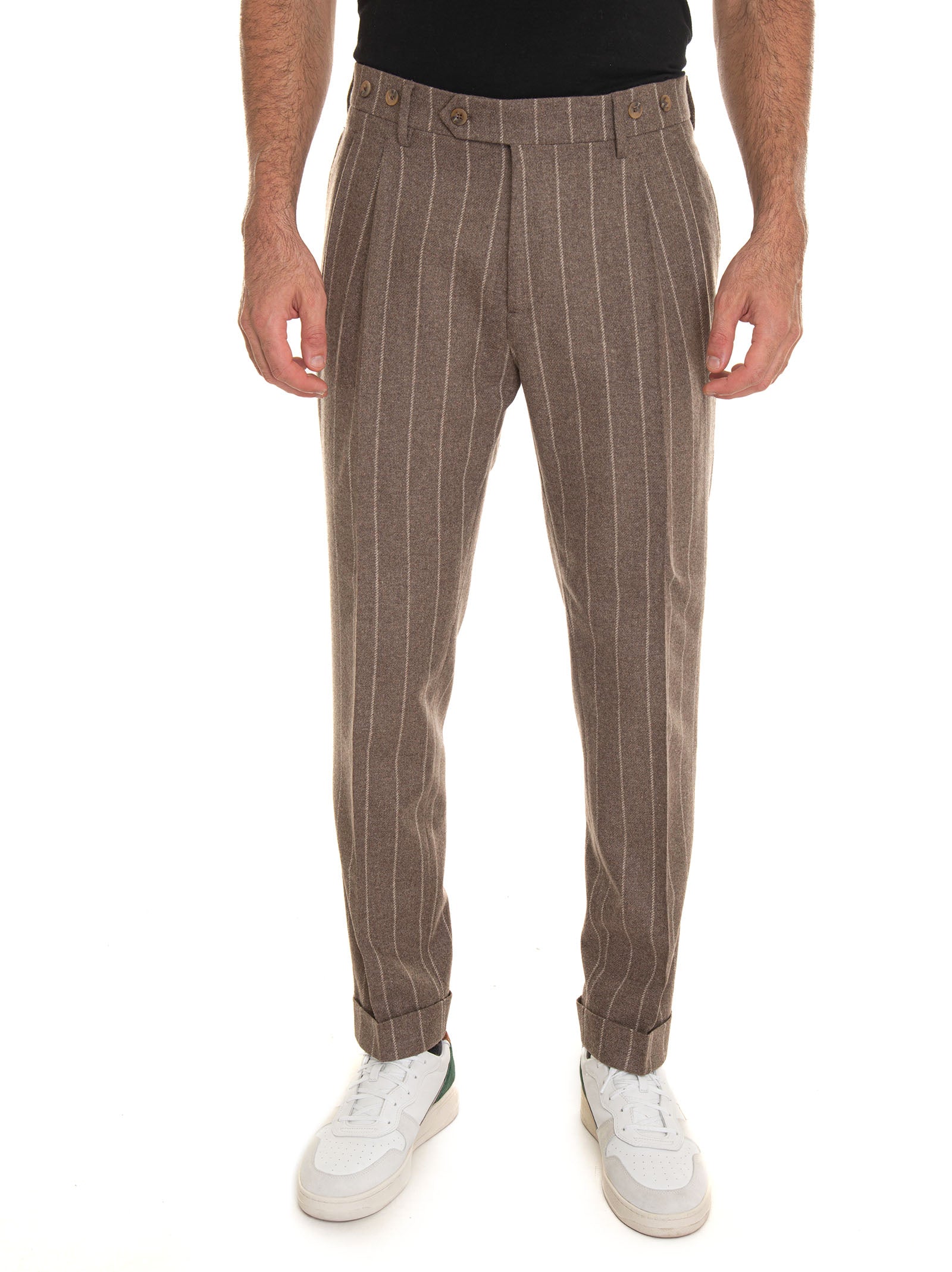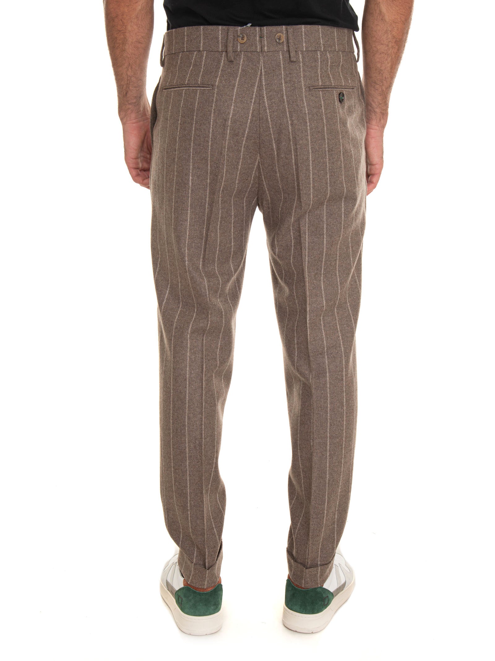 Pantalone modello chino Berwich BARBERGC, pinces sul davanti, fantasia rigata, spacchetto sartoriale, risvolti sul fondo, fondo 17 cm, vestibilità carrot, composizione: 100% lana vergine, linea: BERWICH.