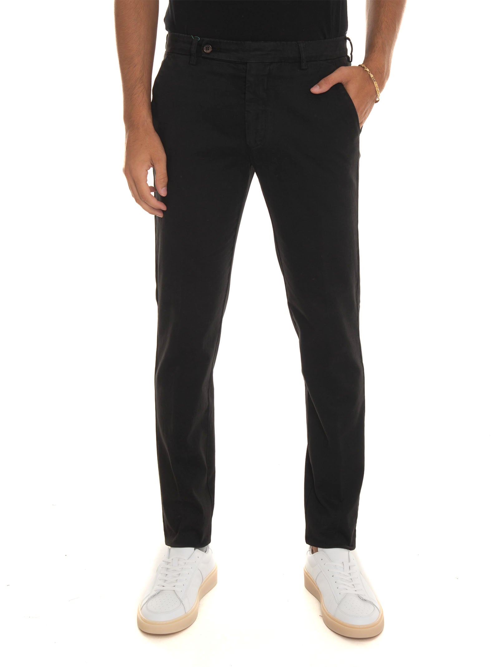 Pantalone modello chino, chiusura con bottone e zip a scomparsa, spacchetto sartoriale, logo tasca destra, fondo 16 cm, vestibilità slim, composizione: 98% cotone, 2% elastan, linea: BERWICH.