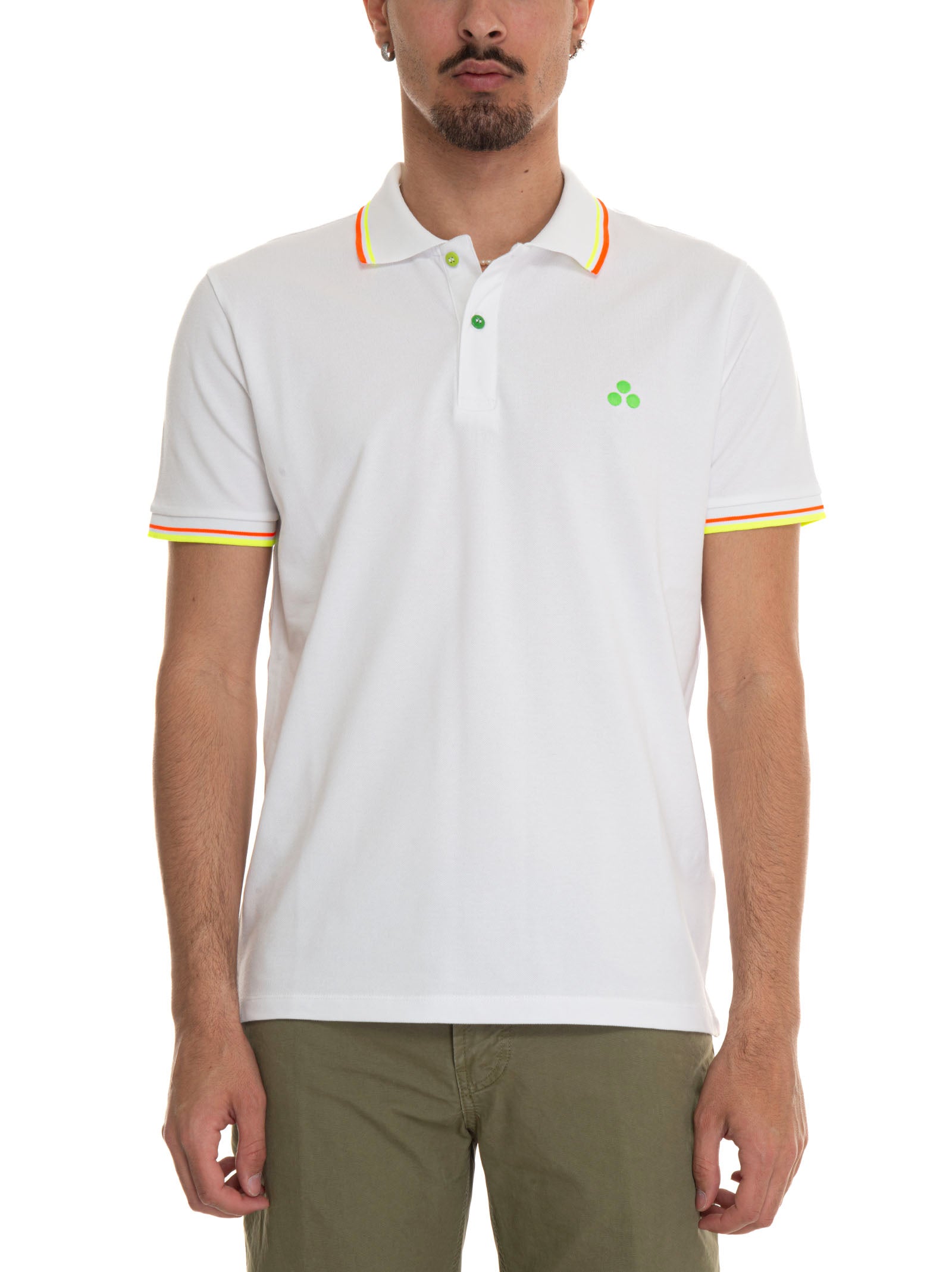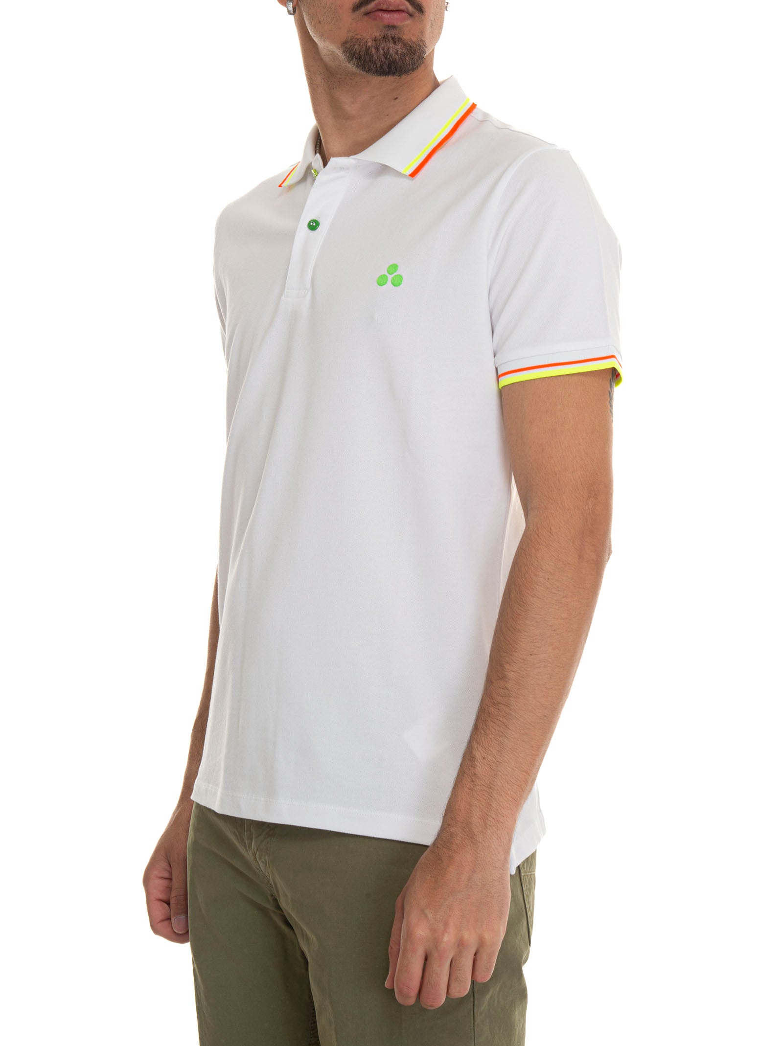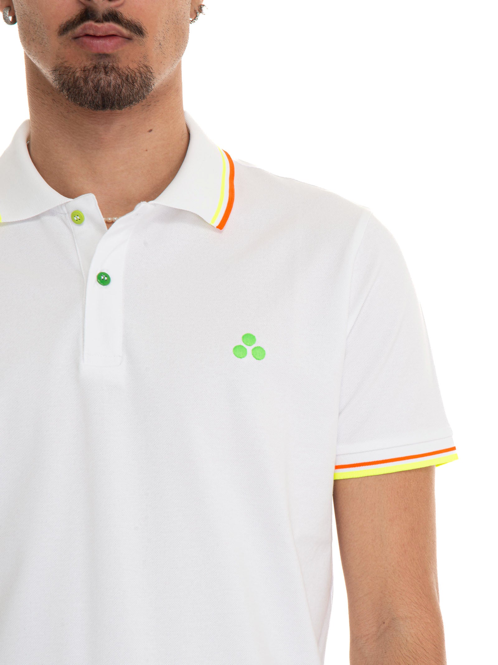 Polo manica corta Peuterey NEWSELANDINASTR02, profili fluo, logo sul petto, spacchetti laterali, tessuto operato, composizione: 95% cotone, 5% elastan, linea: PEUTEREY.