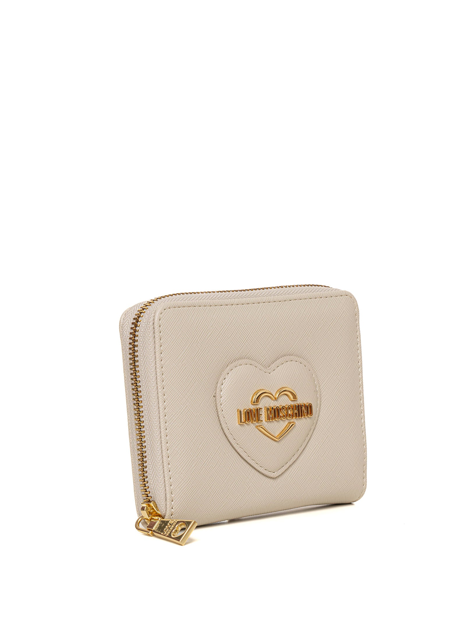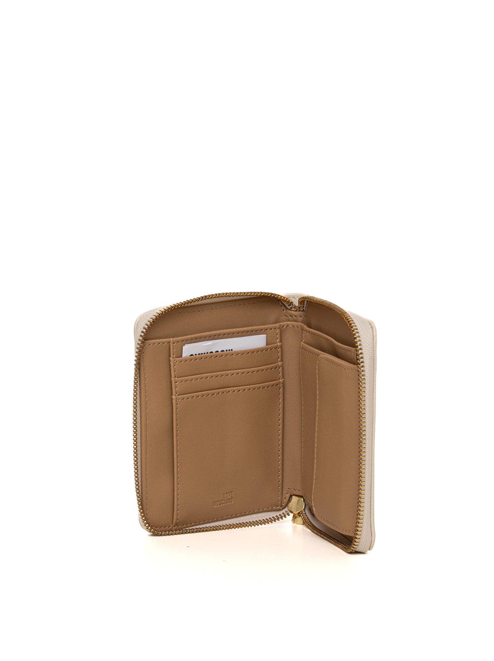 Portafoglio, scomparti portacarte, scomparto banconote, scomparto portamonete, chiusura con cerniera, logo frontale, composizione: 100% poliuretanico, linea: LOVE MOSCHINO.