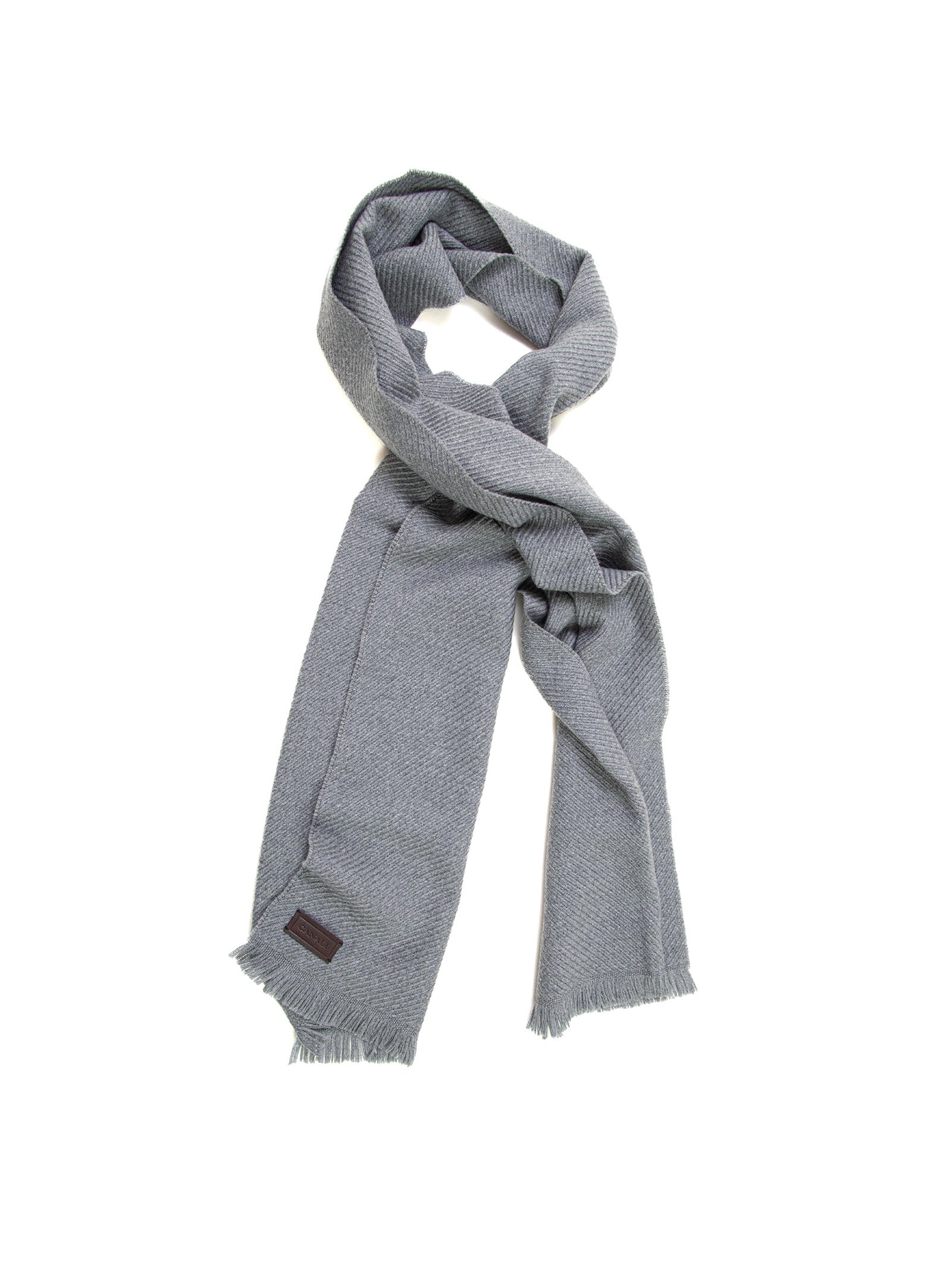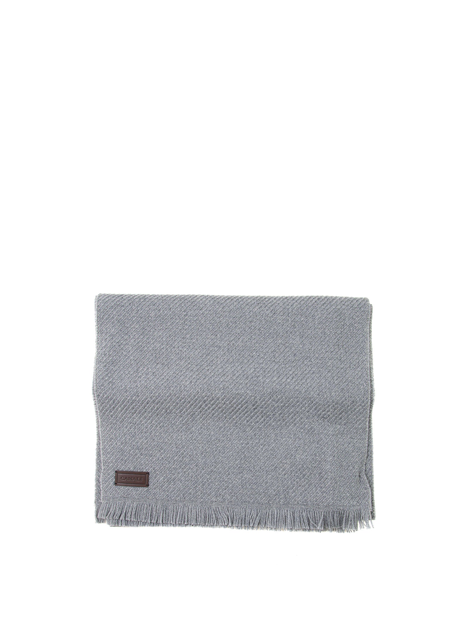 Sciarpa classica, fantasia diagonale, frange sul fondo, logo in pelle, composizione: 100% lana, linea: CANALI.