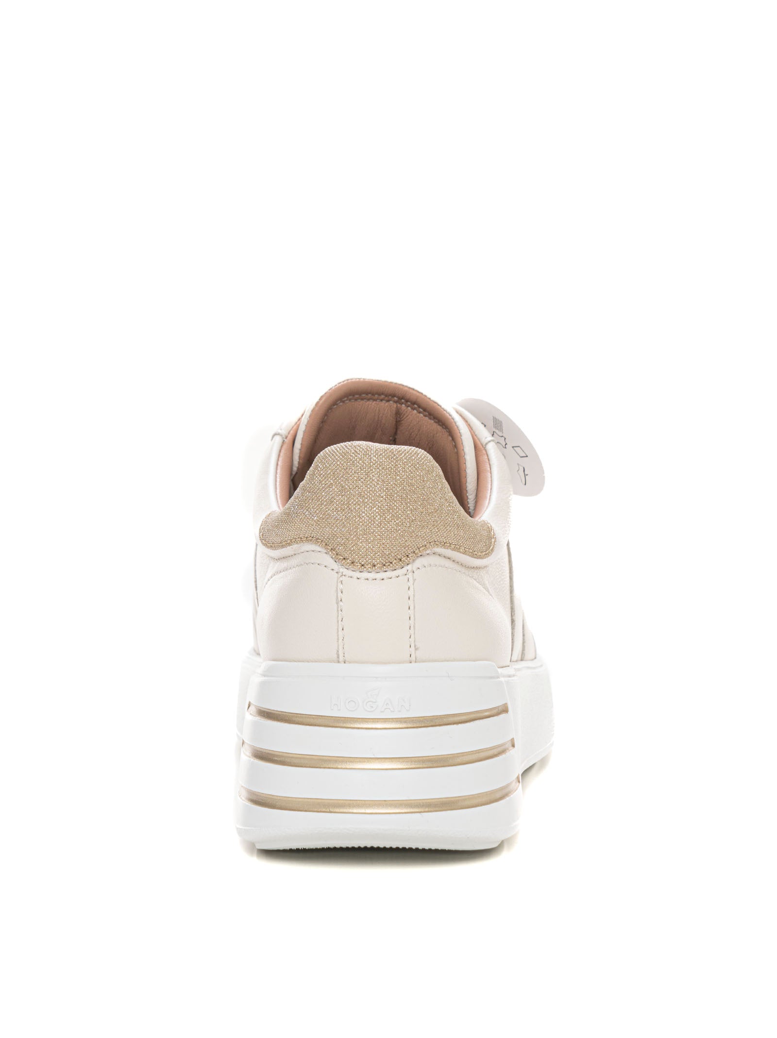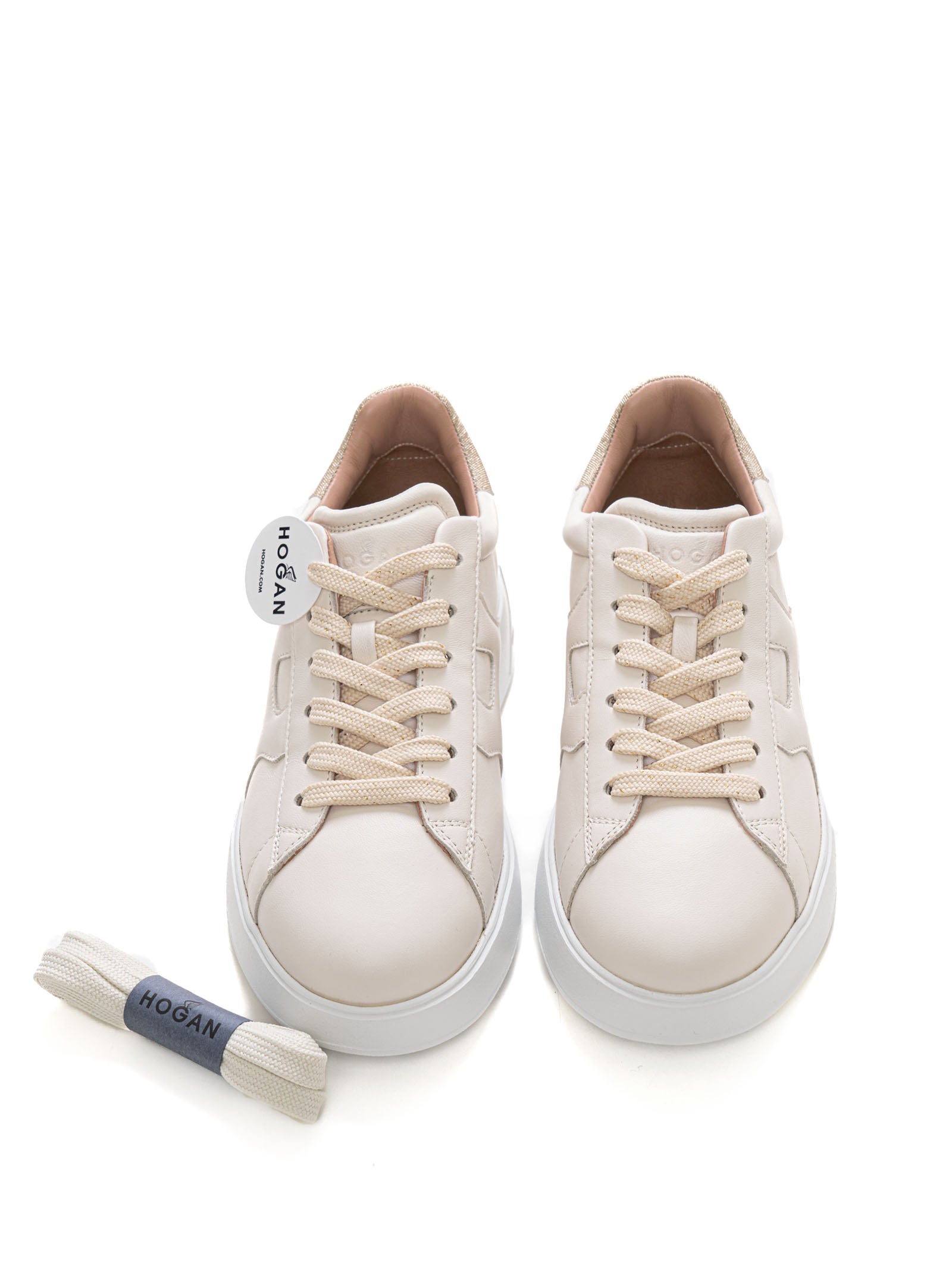 Sneakers in pelle con lacci Rebel Beige-oro Hogan Donna