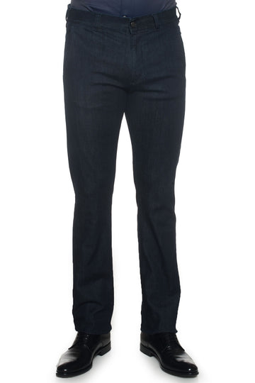 Jeans denim taglio chino, chiusura con bottone e zip a scomparsa, logo posteriore, fondo 20...