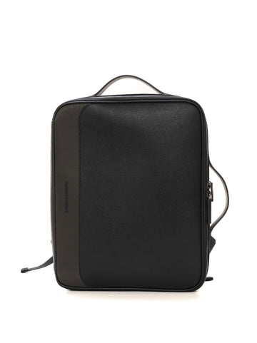 Borsa porta pc, chiusura con cerniera, spalline regolabili, tasche interne multifunzione, pelle saffiano, logo lettering...