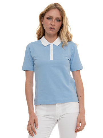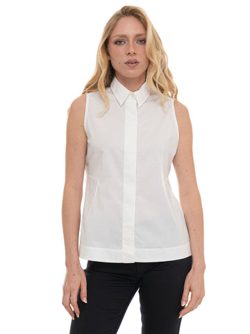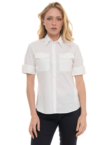 Camicia classica da donna, fantasia millerighe, manica lunga, chiusura bottoni a scomparsa, logo cucito sul...