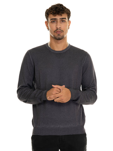 Pullover girocollo, stone washed, tinta unita, made in italy, vestibilità slim, composizione: 100% lana vergine,...
