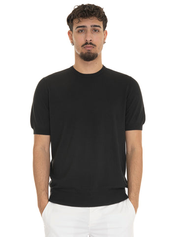 Maglia girocollo, mezza manica, tinta unita, composizione: 100% cotone, linea: GRAN SASSO.