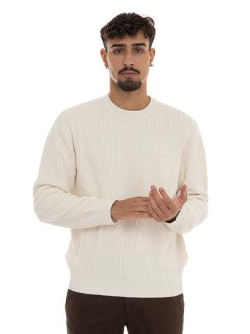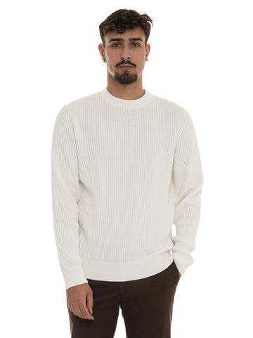 Maglia girocollo, manica lunga, polsini e fondo in maglia inglese, logo posteriore, composizione: 100% lana...