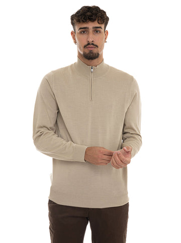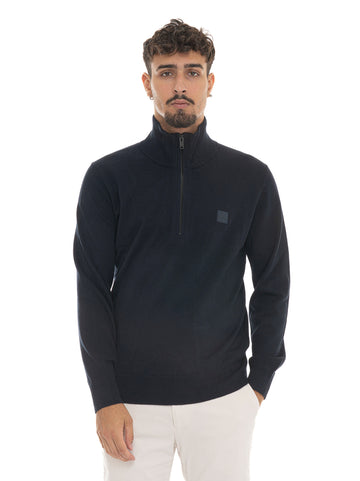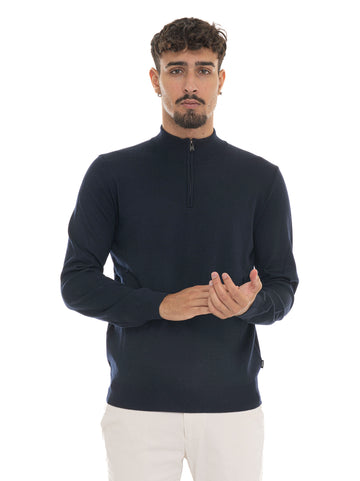 Pullover mezza zip BOSS EBENJI, tinta unita, linguetta con logo, composizione: 100% lana, linea: BOSS.
