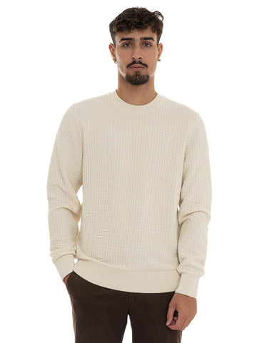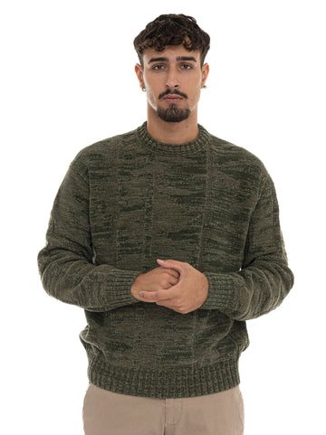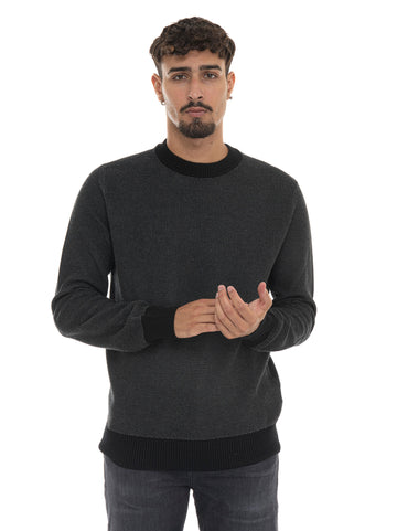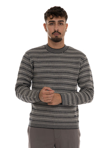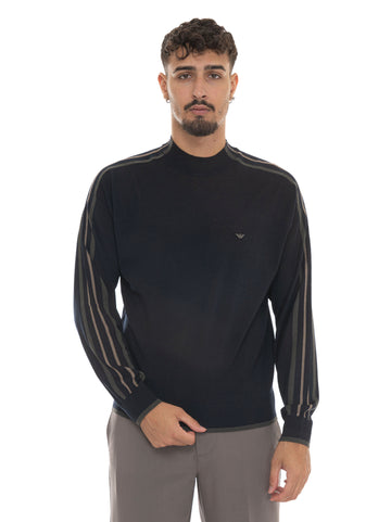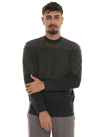 Maglia girocollo, lavorazione operata, bicolore, composizione: 100% lana vergine, linea: EMPORIO ARMANI.