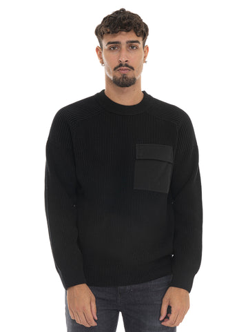 Maglia girocollo BOSS KALAMARO-, polsini e molla elasticizzati, lavorazione a costa, manica scesa, tasca sul...