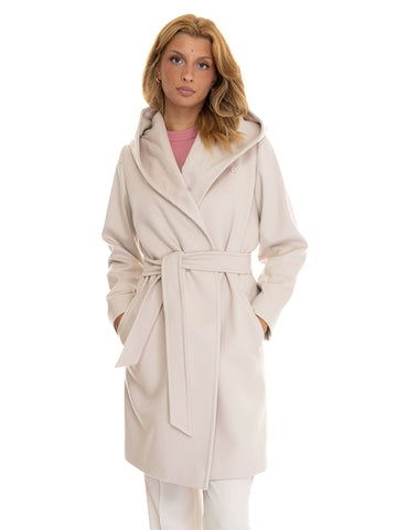 Cappotto in lana Max Mara Studio Newmang, cappuccio fisso, cintura in vita, tasche sul davanti,...