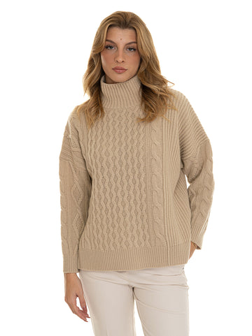 Maglia Max Mara Studio Veneto, collo in piedi, lavorazione effetto intrecciato, spacchi laterali, spalla scesa,...