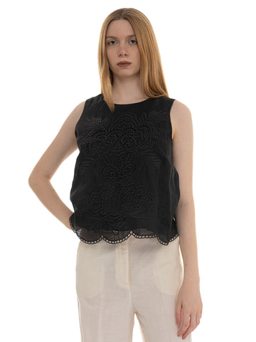 Top Max Mara Studio Efeso, pizzo sul davanti, chiusura con bottone sul retro, composizione: 100%...