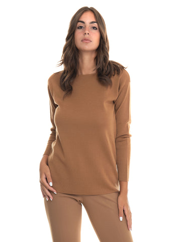 Maglia girocollo Max Mara Studio Benares, logo in rilievo, fondo e polsini a coste, vestibilità...