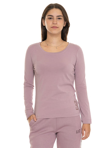 T-shirt, manica lunga, girocollo, logo laterale, tessuto stretch, composizione: 95% cotone, 5% elastan, linea: EA7.