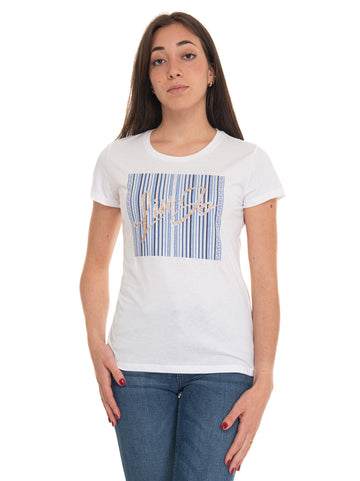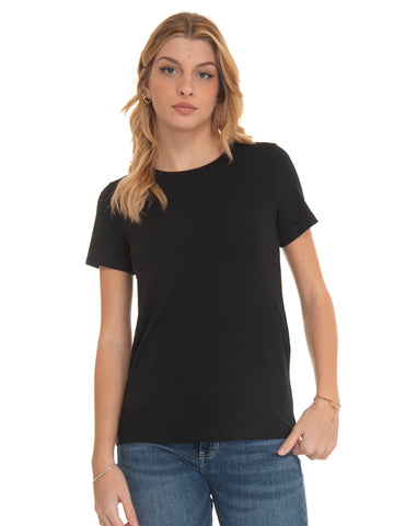 T-shirt, girocollo, manica corta, applicazione gioiello, linguetta con logo, composizione: 100% cotone, linea: LIU JO.