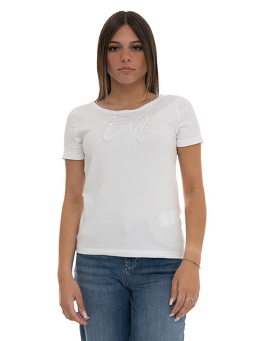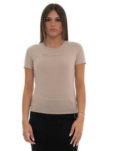 T-shirt, girocollo, manica corta, logo anteriore, composizione: 33% viscosa, 62% poliestere, 5% elastan, linea: EA7.