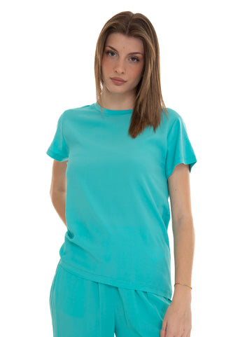 T-shirt, manica corta, girocollo, modello corto, logo lettering applicato sul davanti, composizione: 92% cotone, 8%...